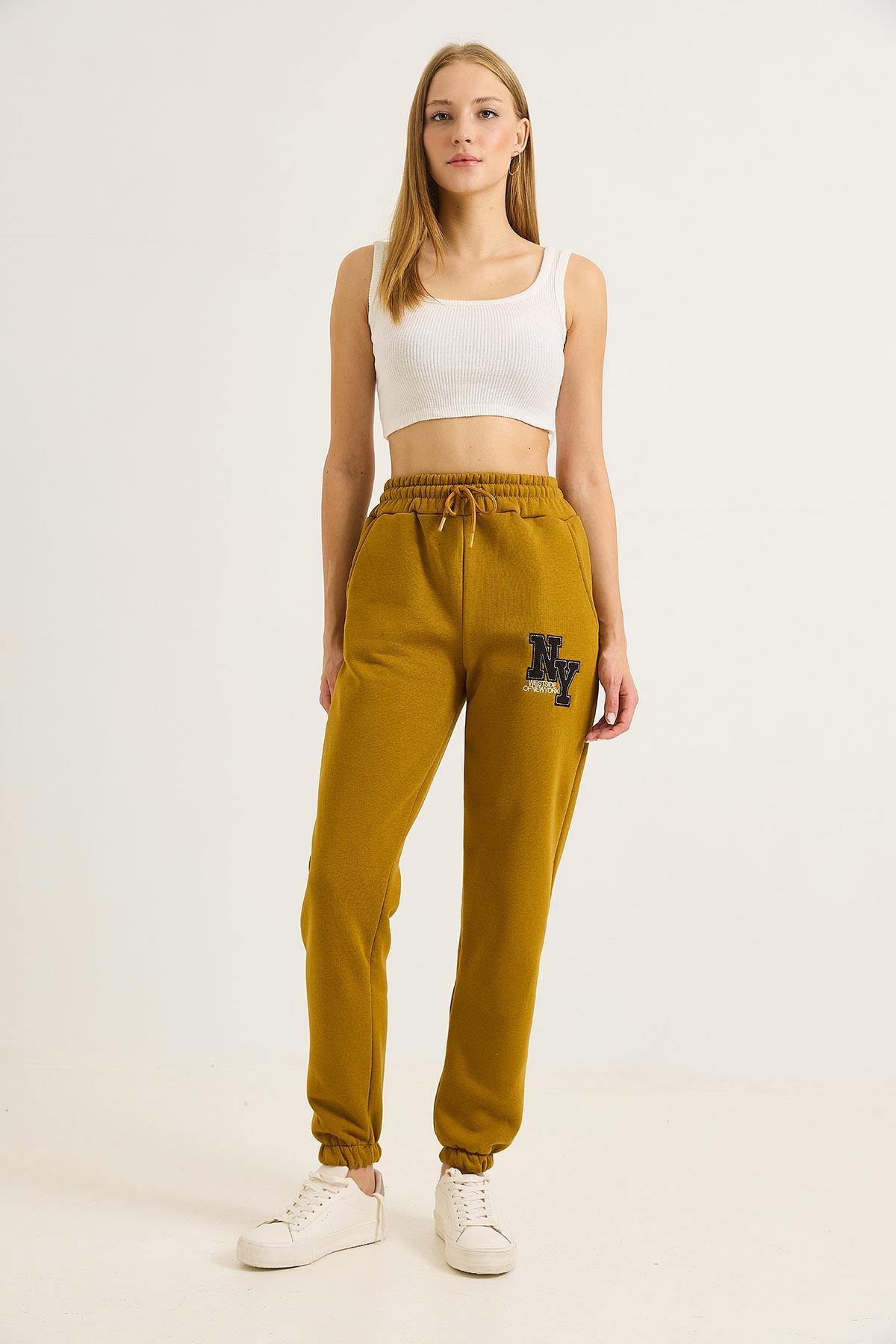 3 İp Şardonlu Bileği Lastikli Nakışlı  Zeytin Eşofman