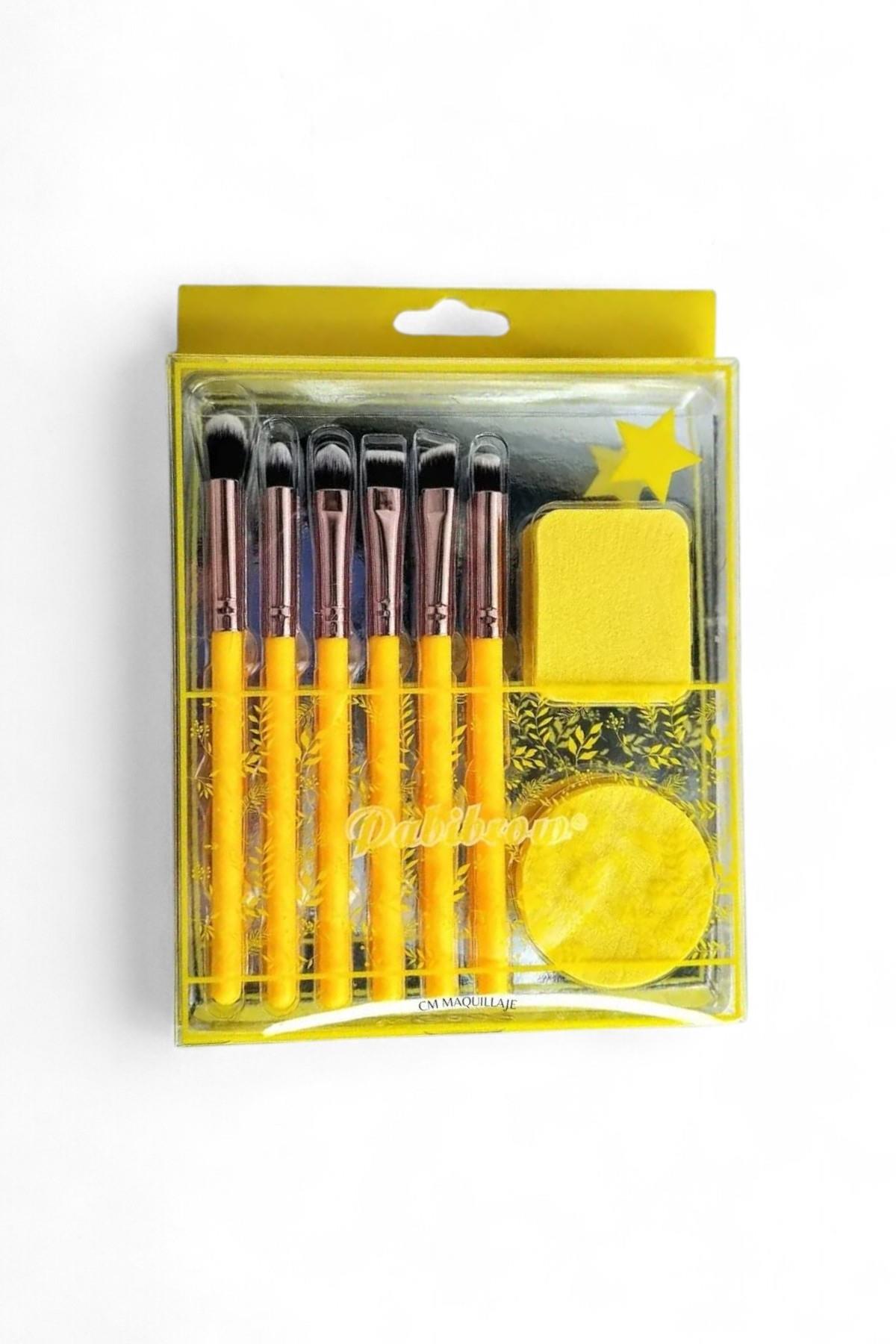 6'LI Fırça + Pudra Sünger Seti Sarı
