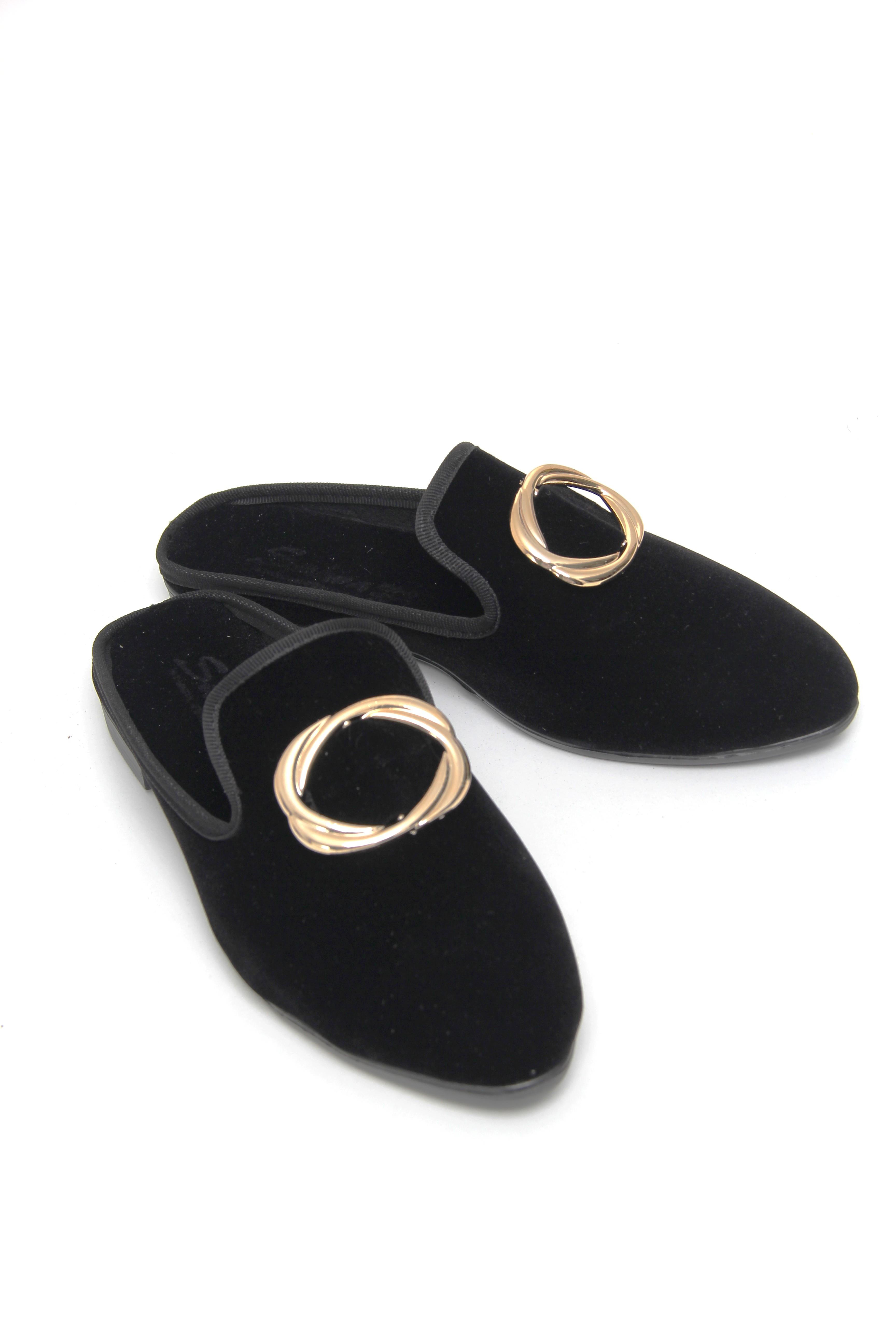 Aksesuar Detaylı Sivri Burun Şık Terlik Siyah