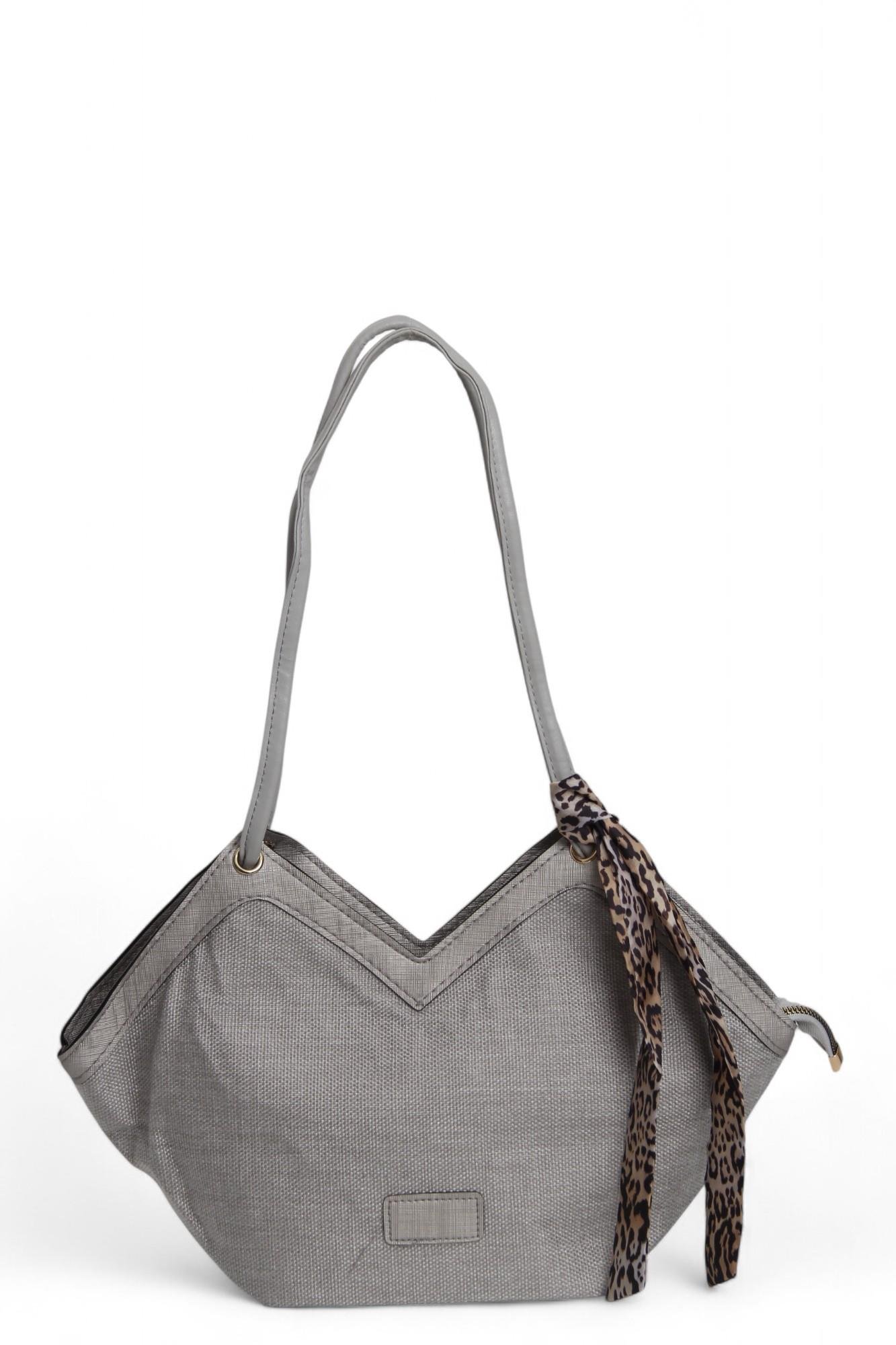 Asimetrik Kesim Fermuarlı Omuz Çantası Gri