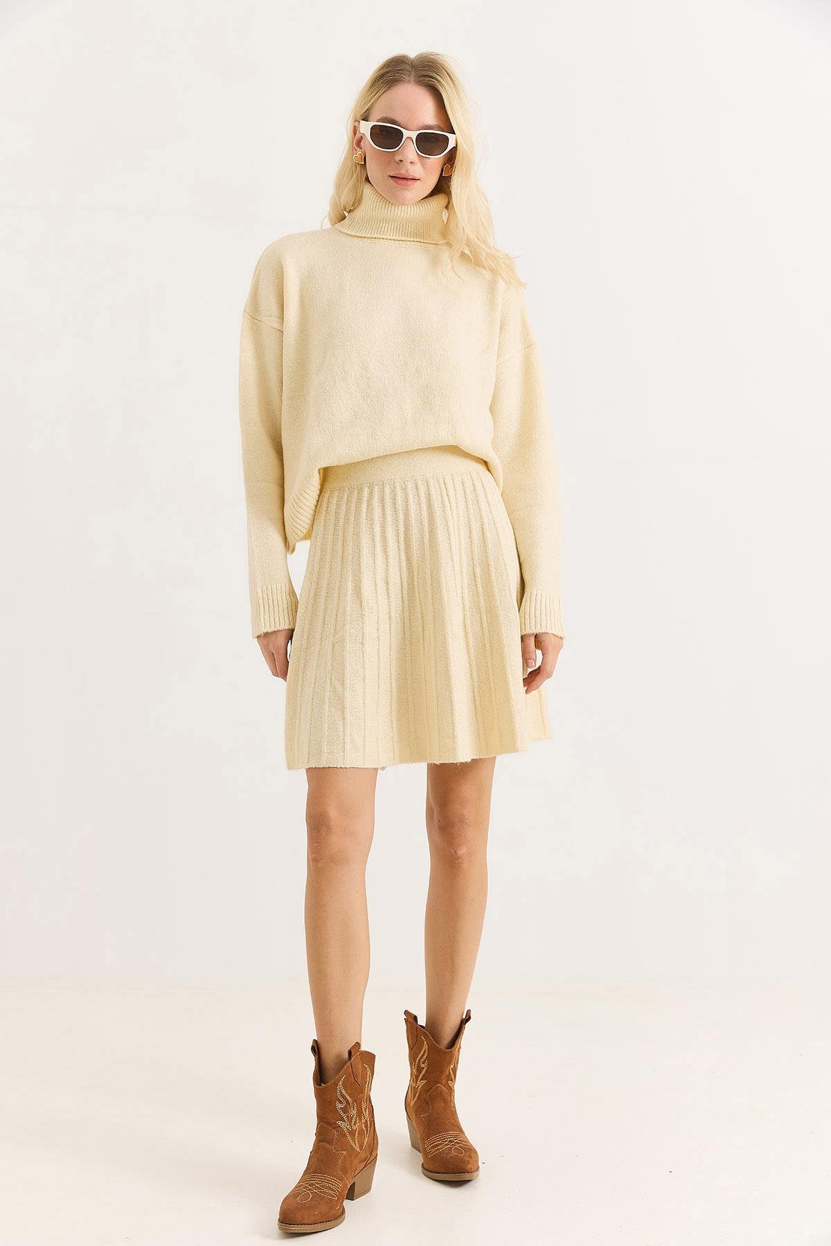 Balıkçı Yaka Etekli Triko Alt Üst Takım Bej (250136TKMXBEJ)