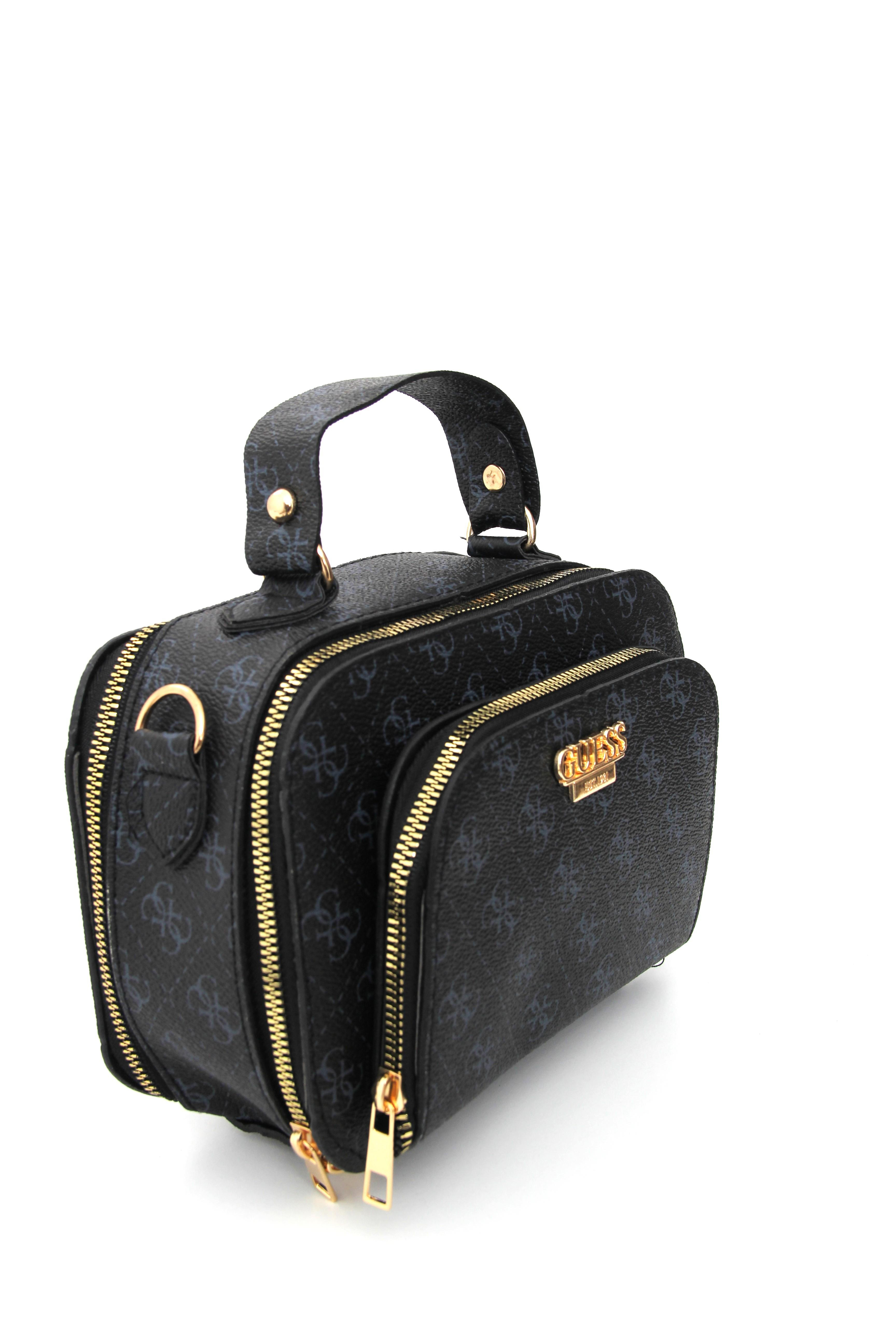 Baskılı Özel Tasarım 3 gözlü Krem Çanta Siyah (500510ÇNTXSYH)