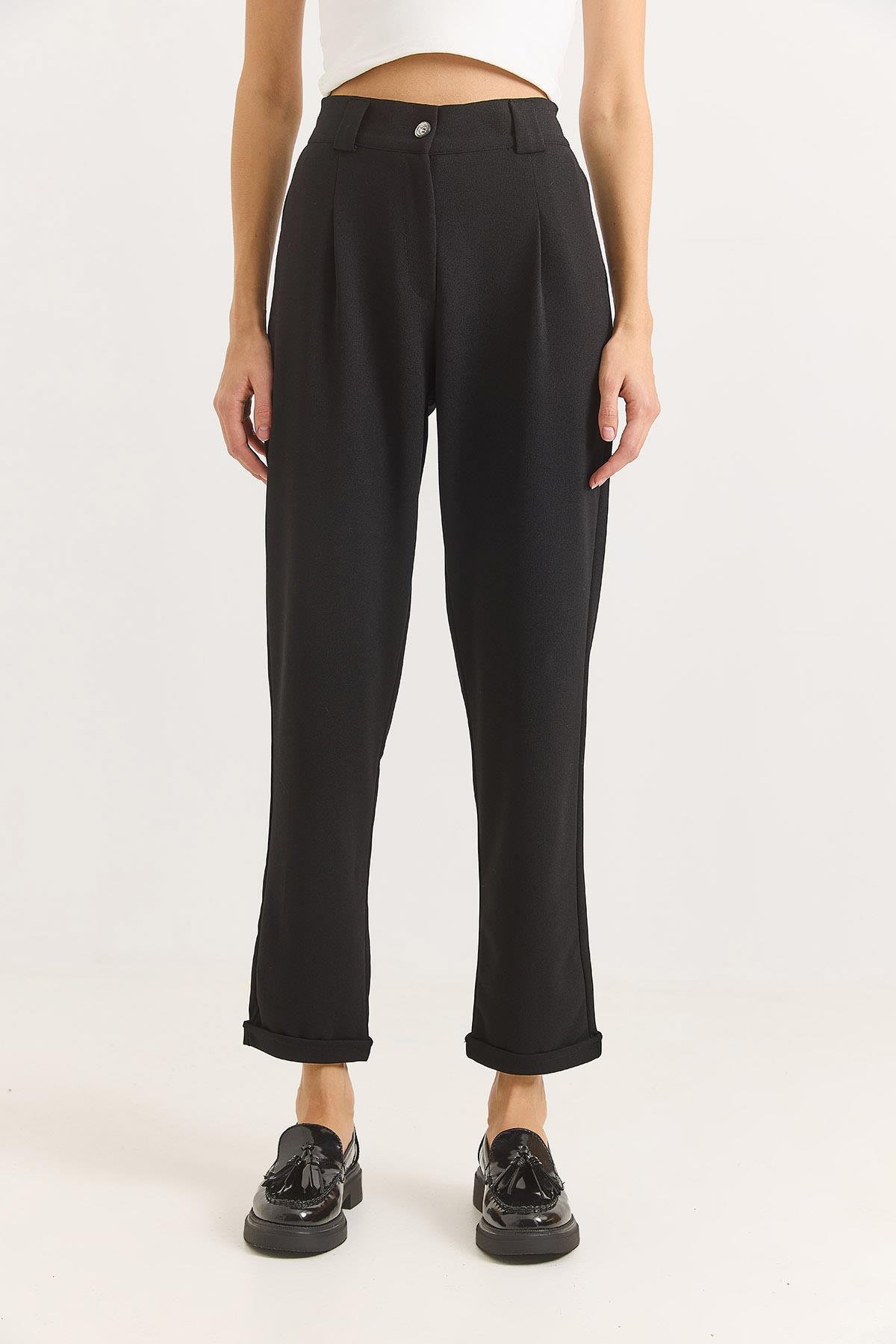 Beli Lastikli Katlı Paça Kadın Pantolon Siyah (251116PNTXSYH)