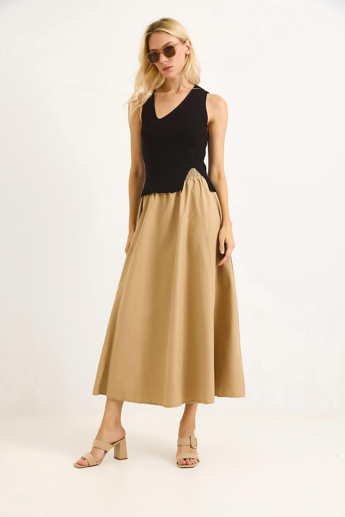 Beli Lastikli Poplin Günlük Uzun Etek Vizon (500702ETKXVZN)