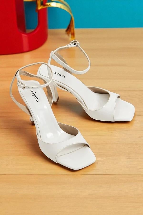 Bilekten Bağlamalı Klasik Kadın Topuklu Ayakkabı Beyaz