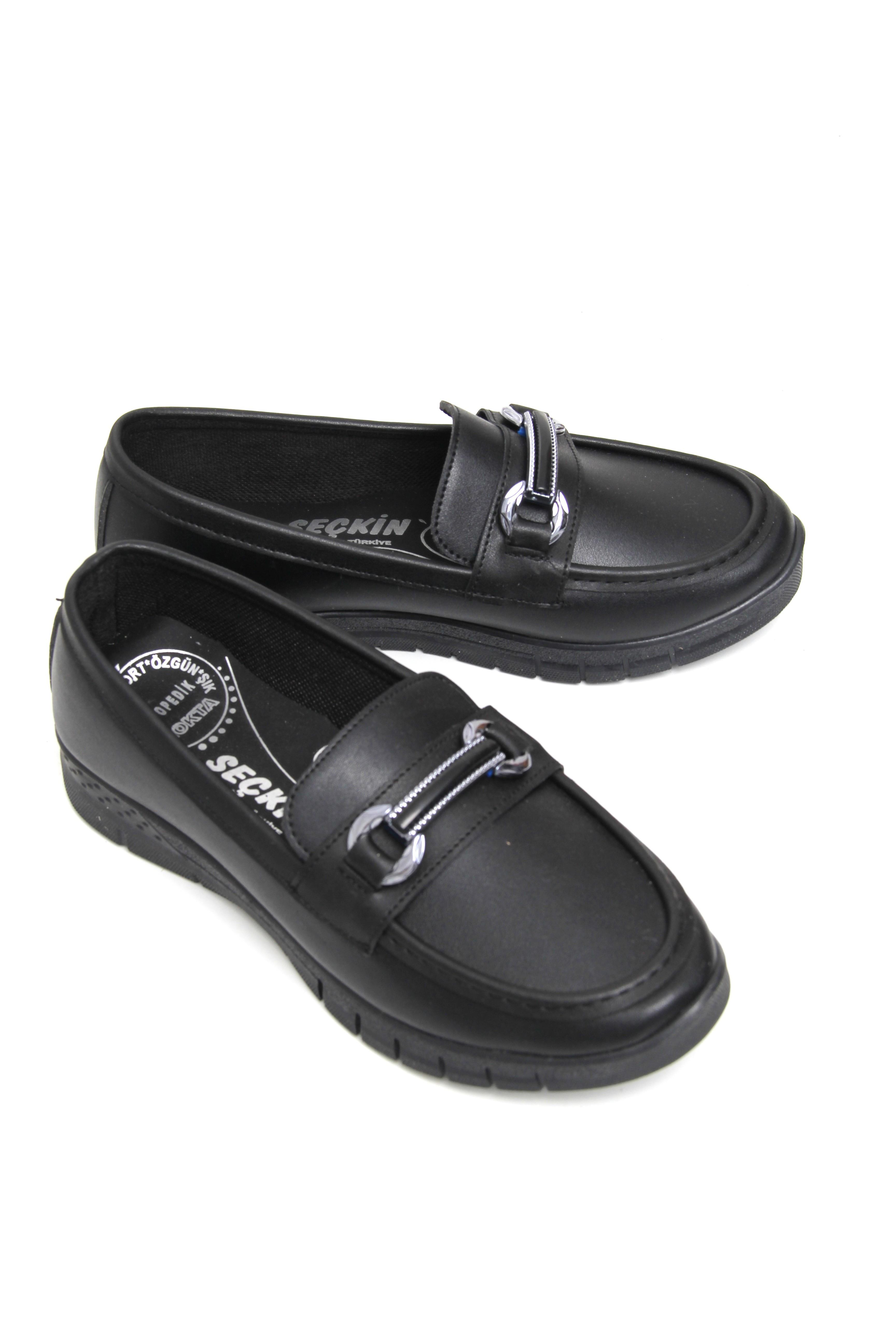 Dolgu Topuklu Aksesuar Detaylı Günlük Ayakkabı Siyah (251321AYKXSYH)