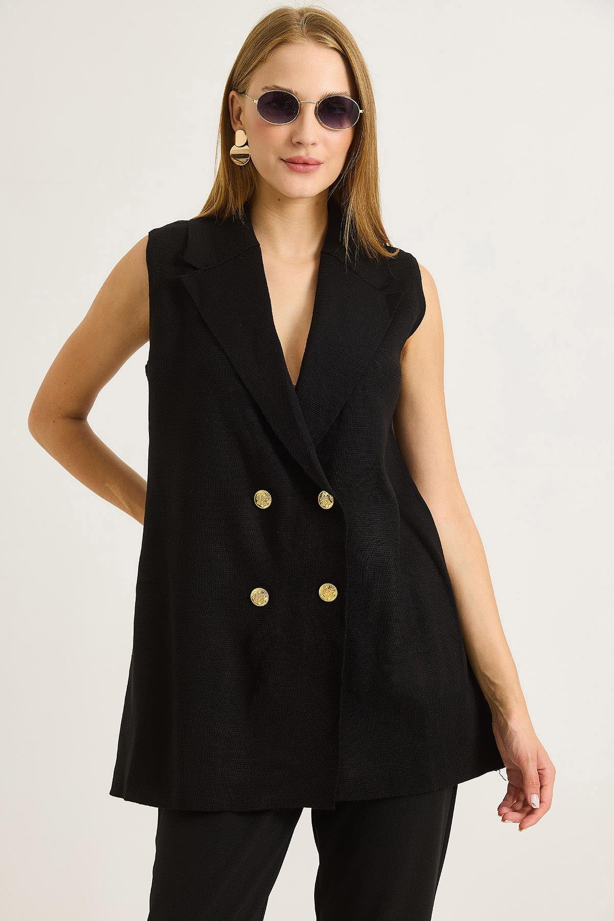 Düğmeli Oversize Triko Yelek Siyah Kadın (500731YLKXSYH)