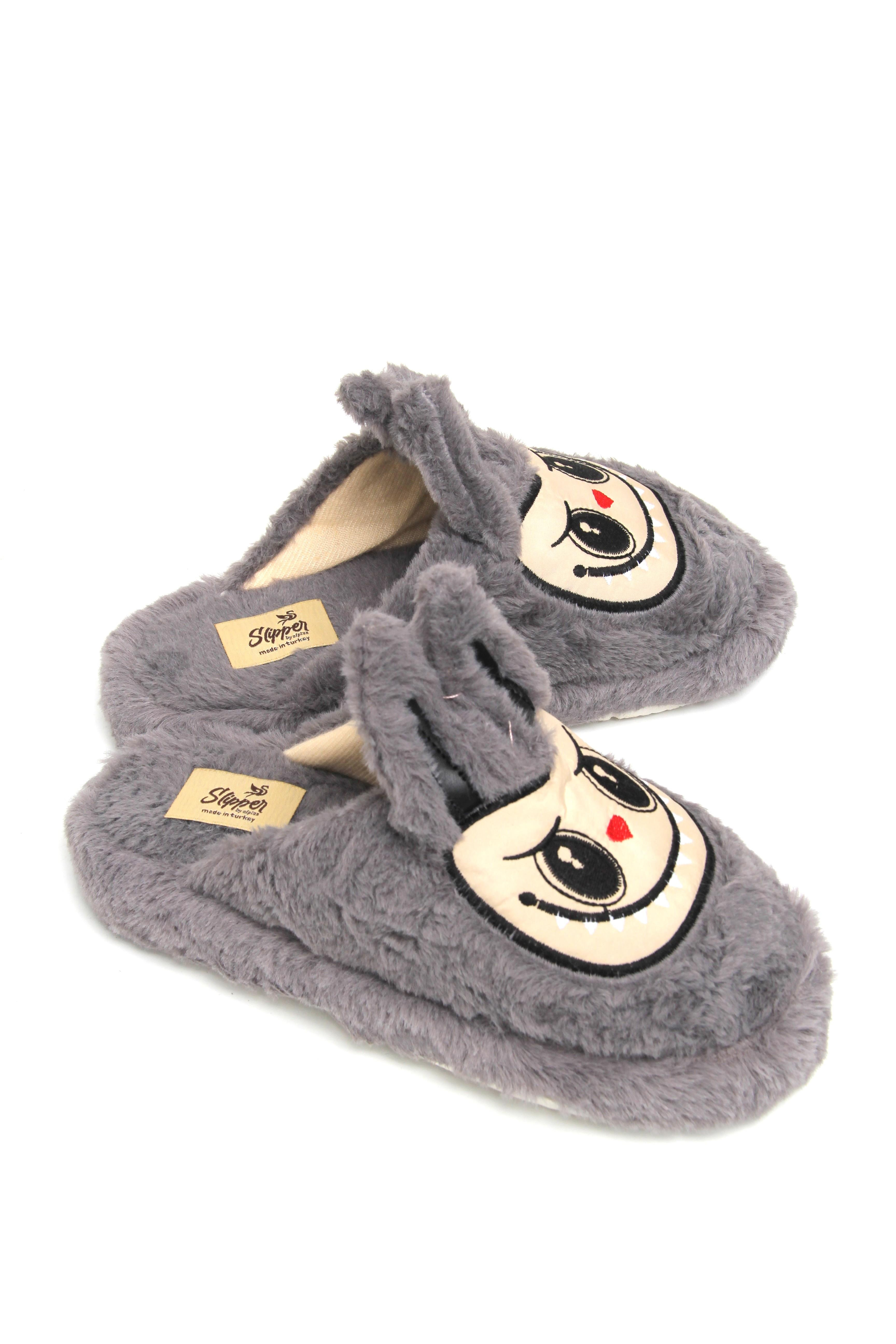 Figürlü Peluş Ev Terliği Gri (251326TRLXGRİ)