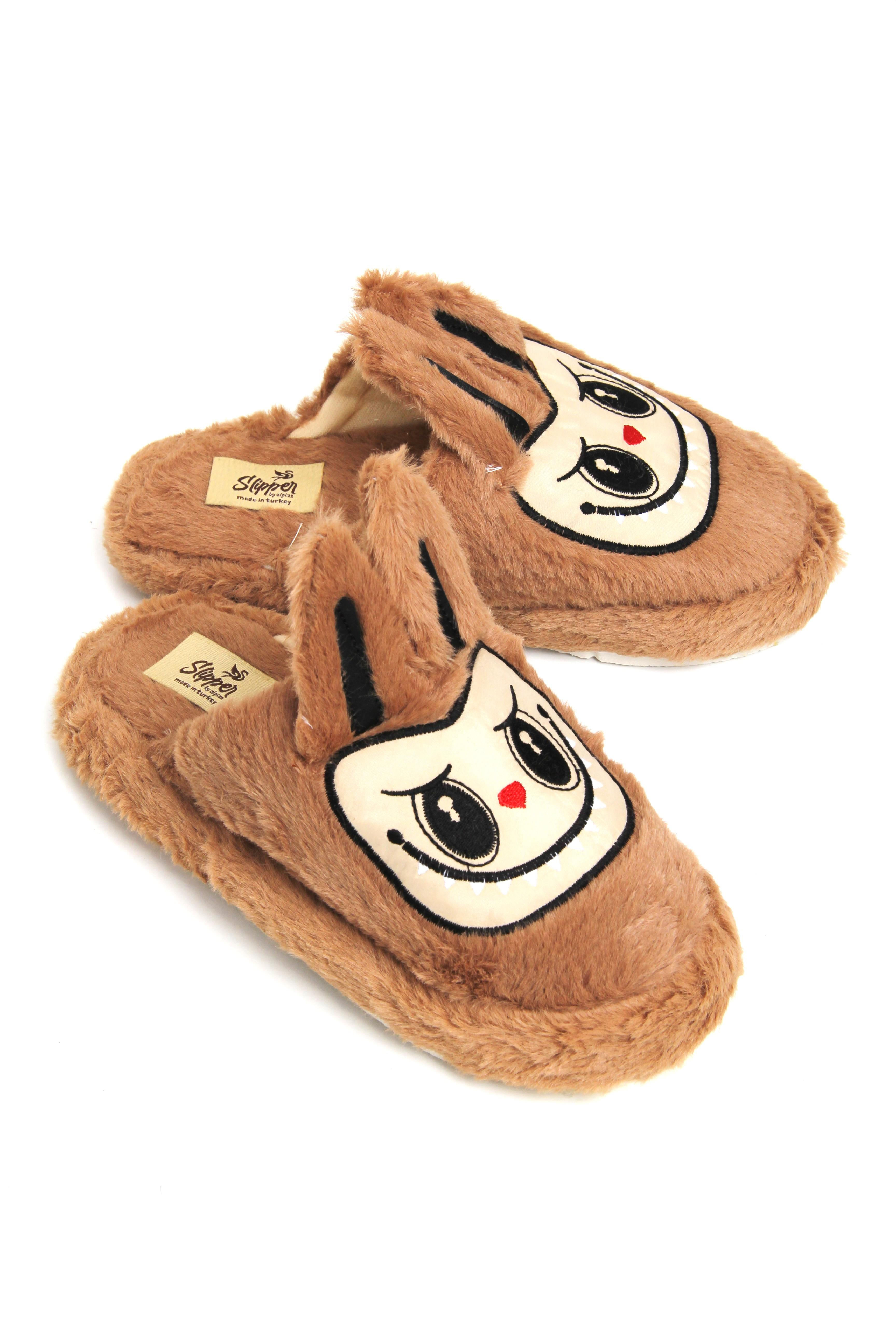 Figürlü Peluş Ev Terliği Kahverengi (251326TRLXKHV)