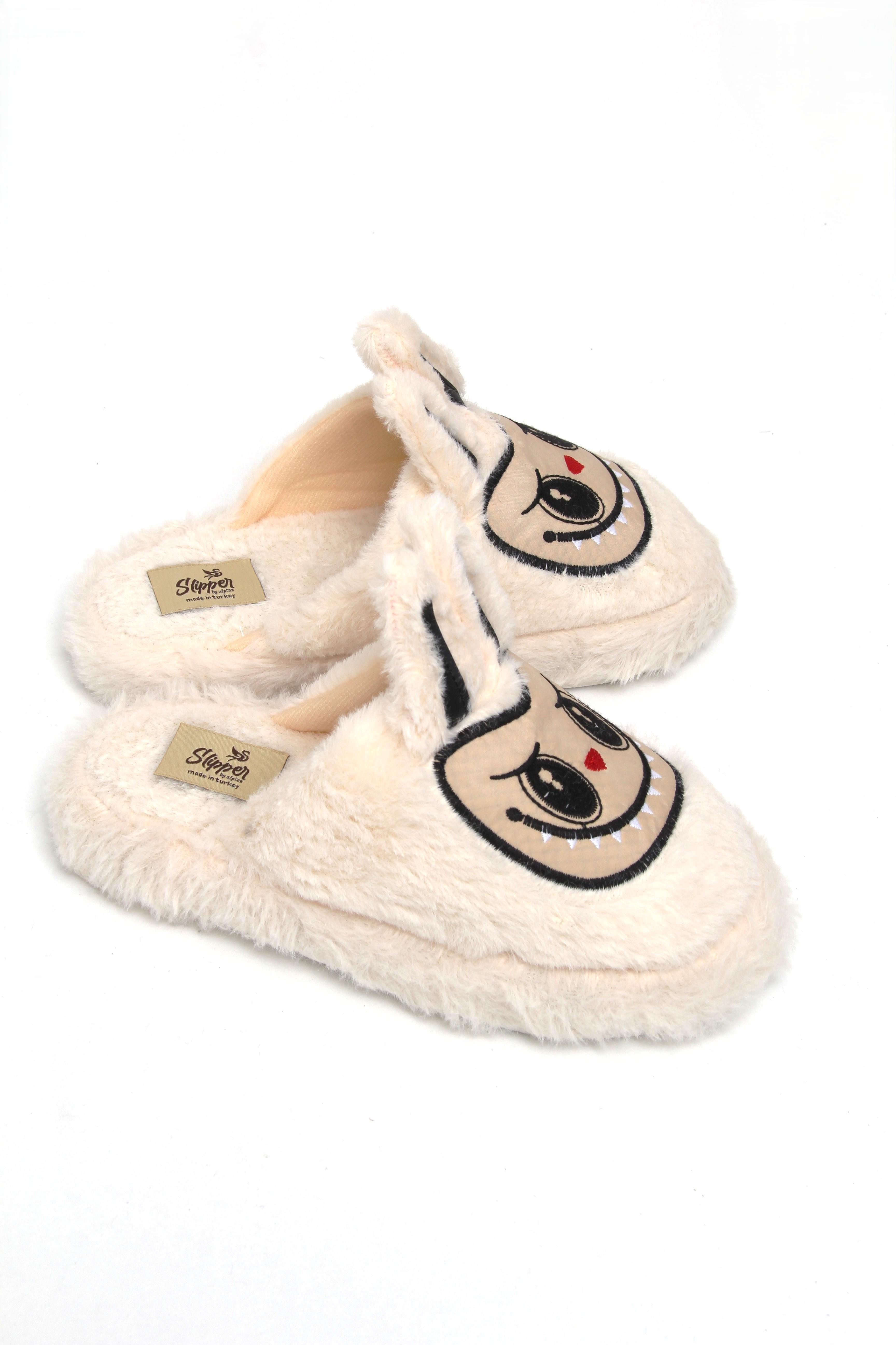 Figürlü Peluş Ev Terliği Krem (251326TRLXKRM)