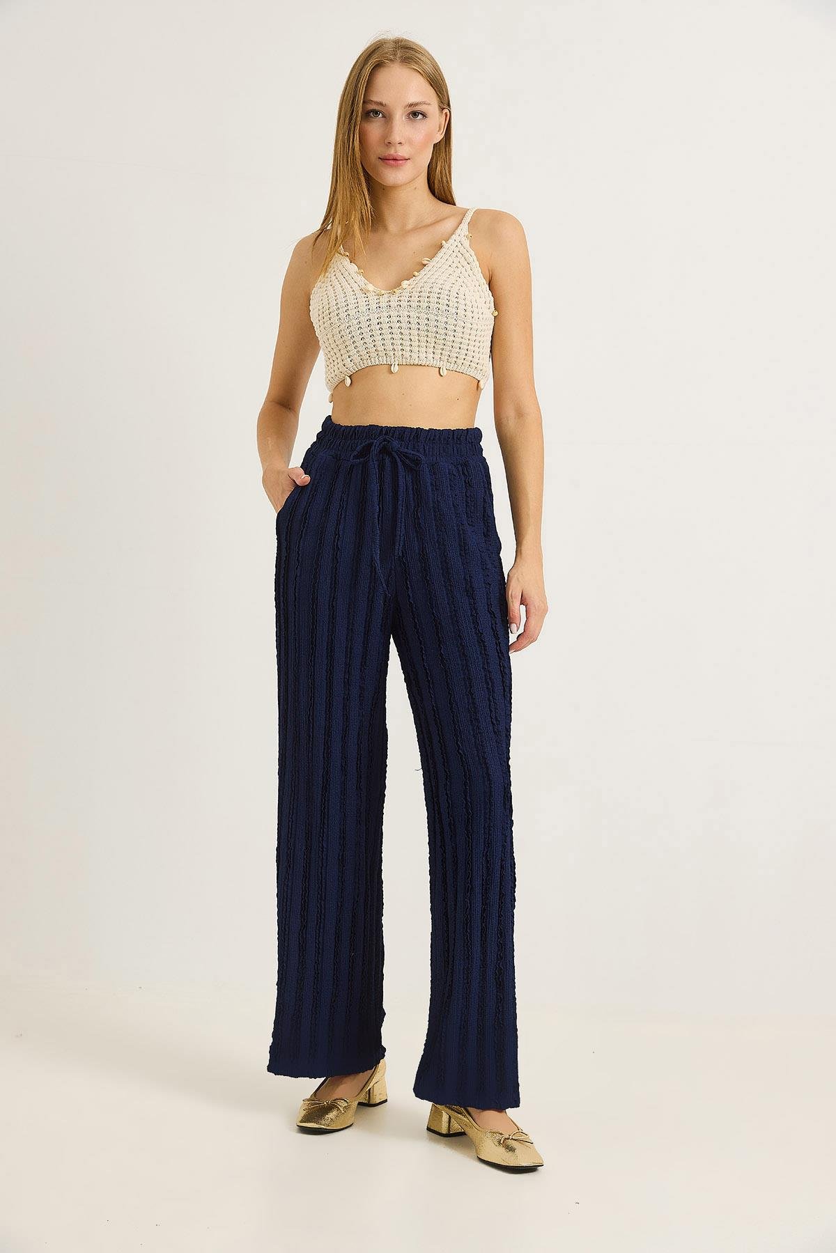 Geniş Paça Pileli Belden Bağlamalı Pantalon Lacivert (251301PNTXLCV)