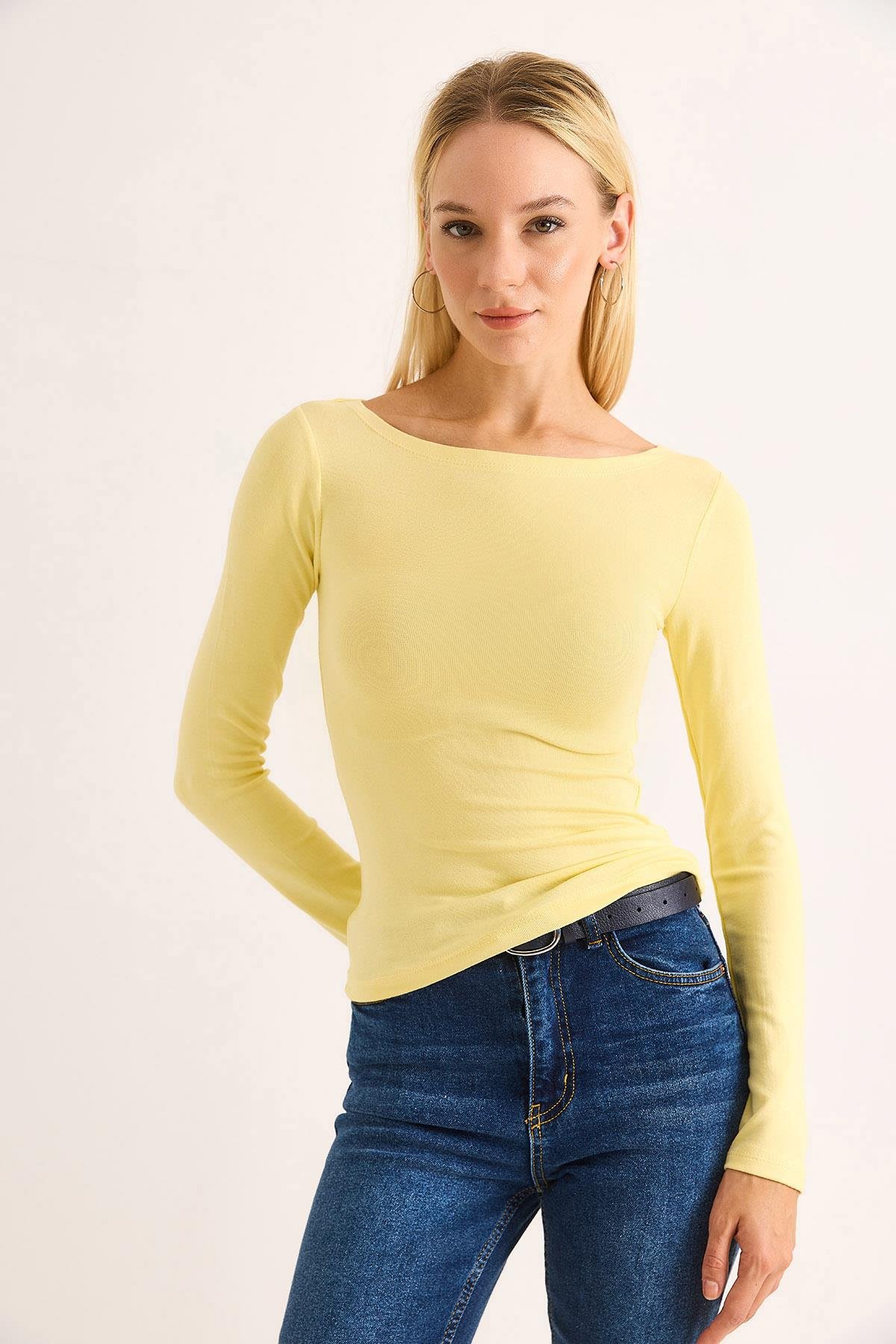 Geniş Yaka Rahat Uzun Kollu Bluz Sarı (500779BLZXSRI)