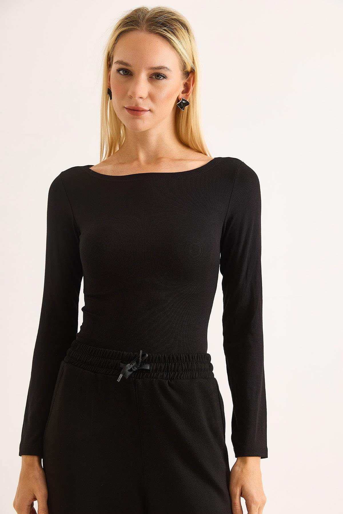 Geniş Yaka Rahat Uzun Kollu Bluz Siyah (500779BLZXSYH)