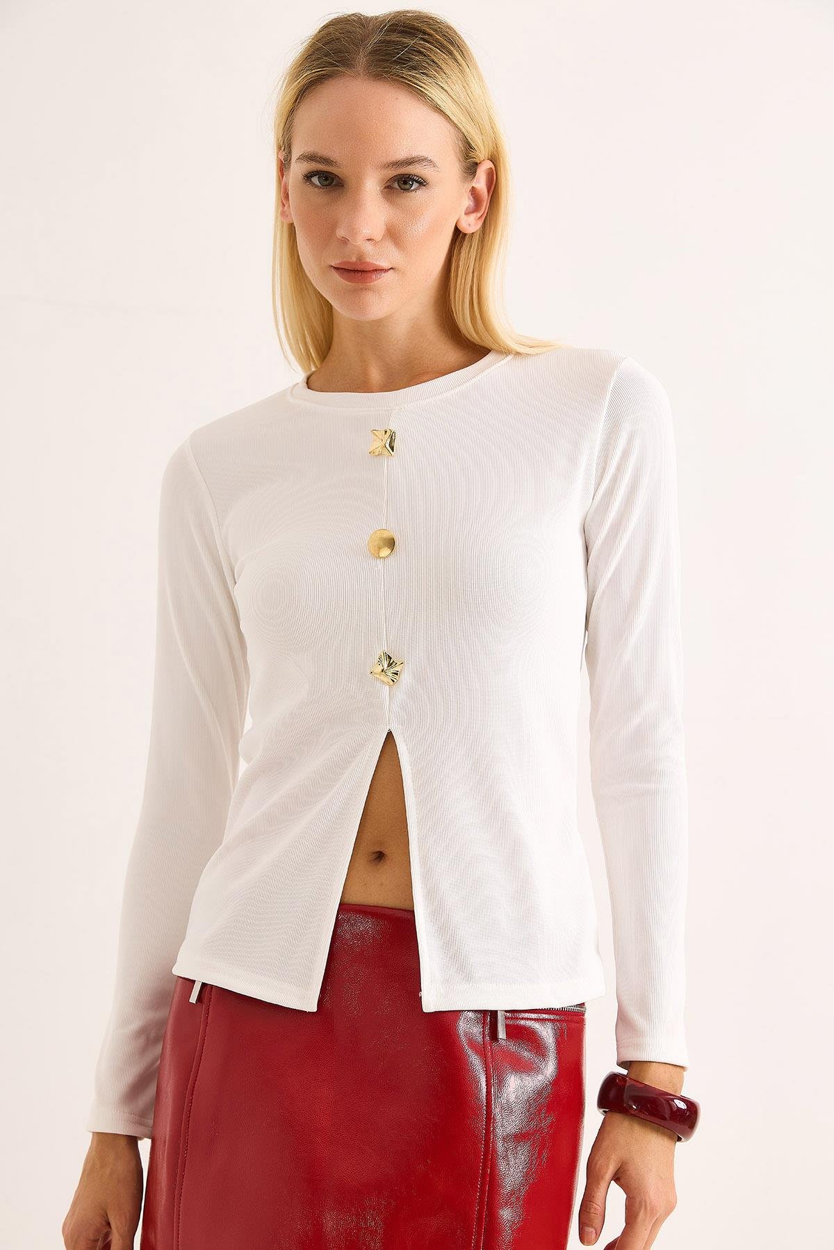 Gold Düğmeli Yırtmaçlı Bluz Beyaz (500760BLZXBYZ)