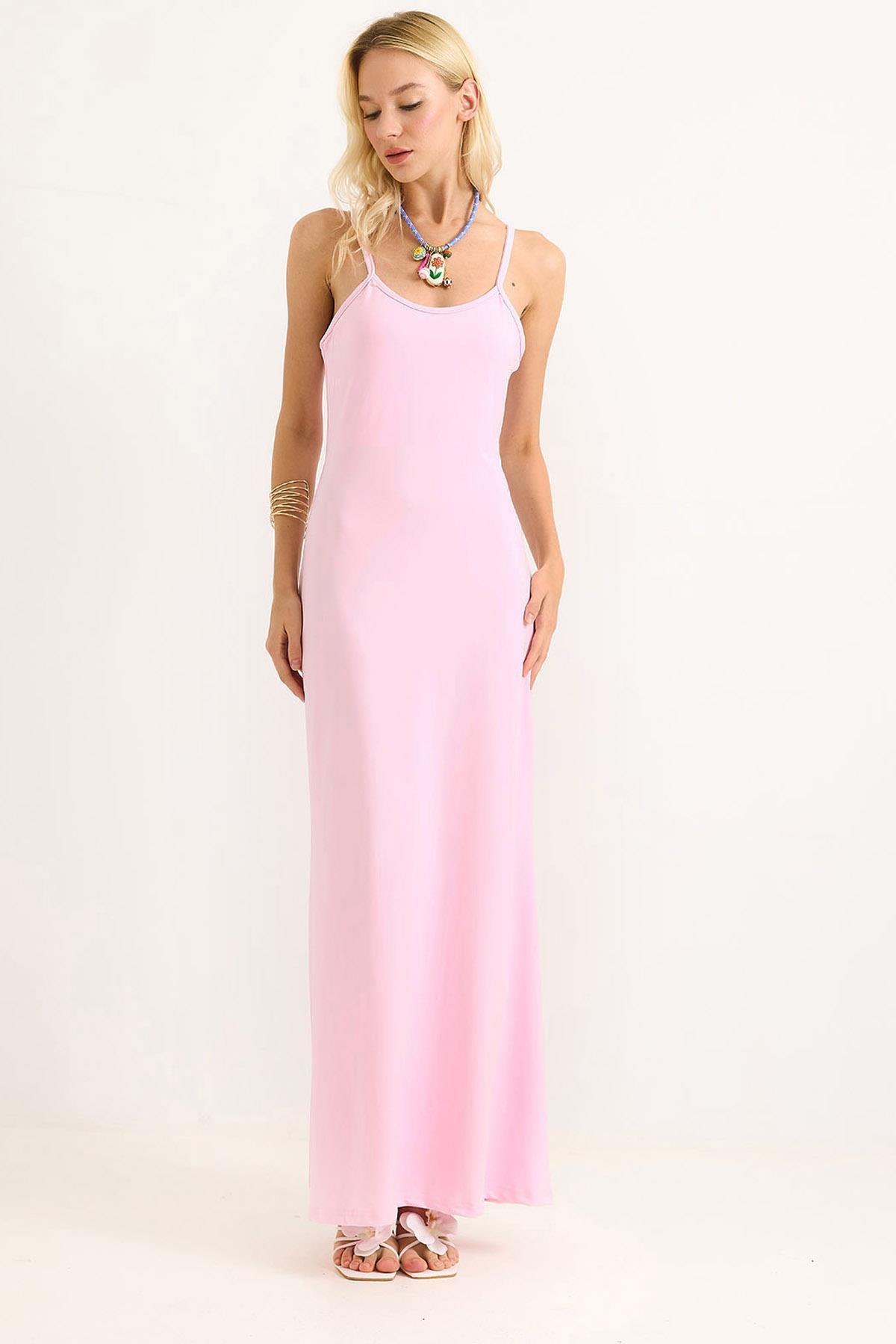 İp Askılı Sırt Dekolteli Uzun Elbise Pembe (251205ELBXPMB)