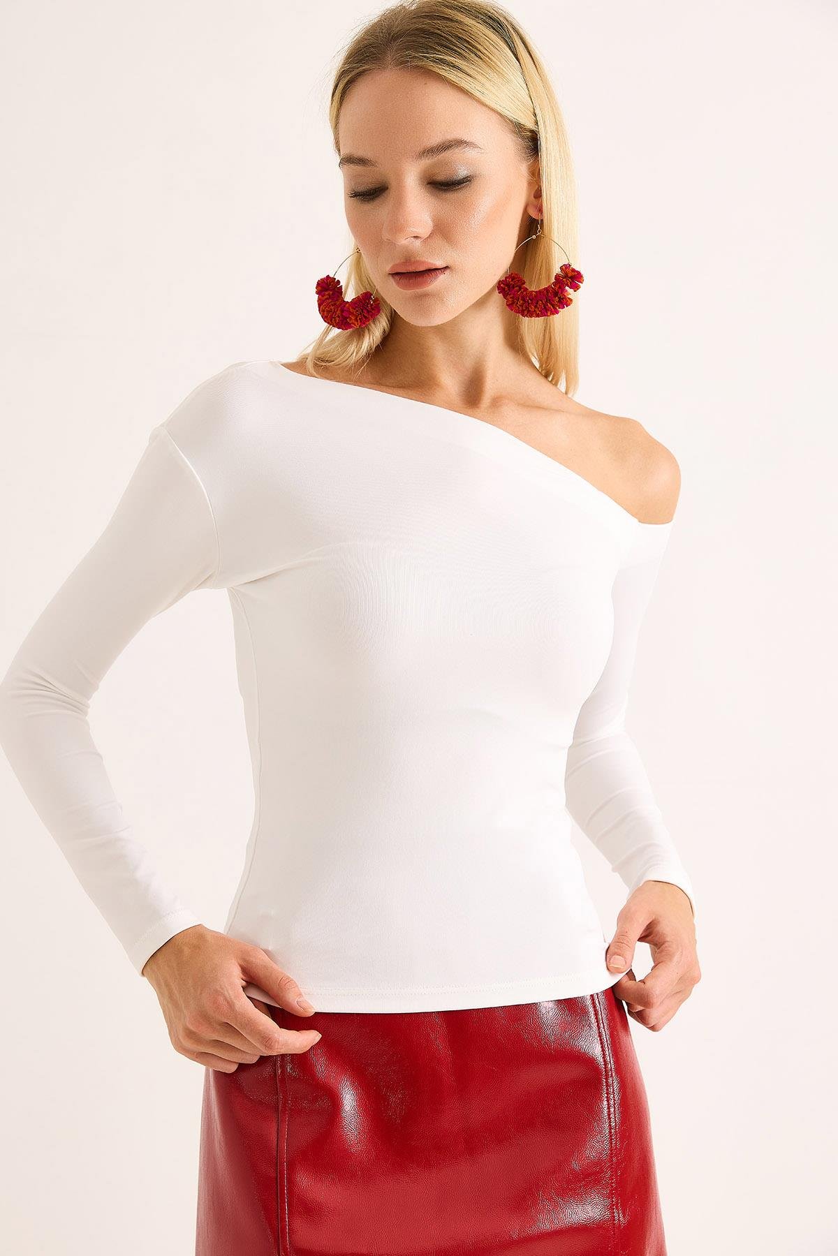 Kadın Asimetrik Yaka Şık Bluz Beyaz (500774BLZBYZ)