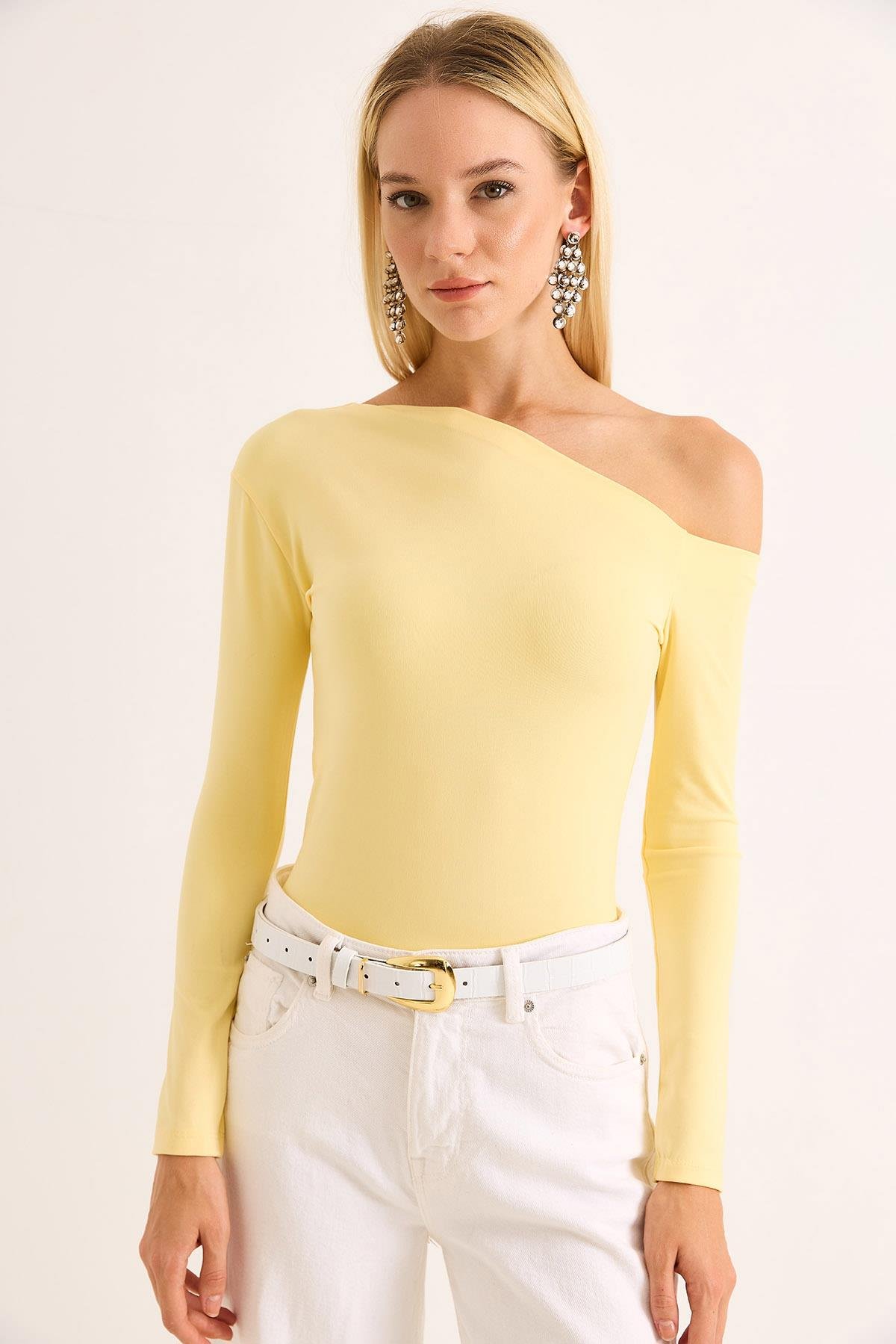 Kadın Asimetrik Yaka Şık Bluz Sarı (500774BLZXRI)