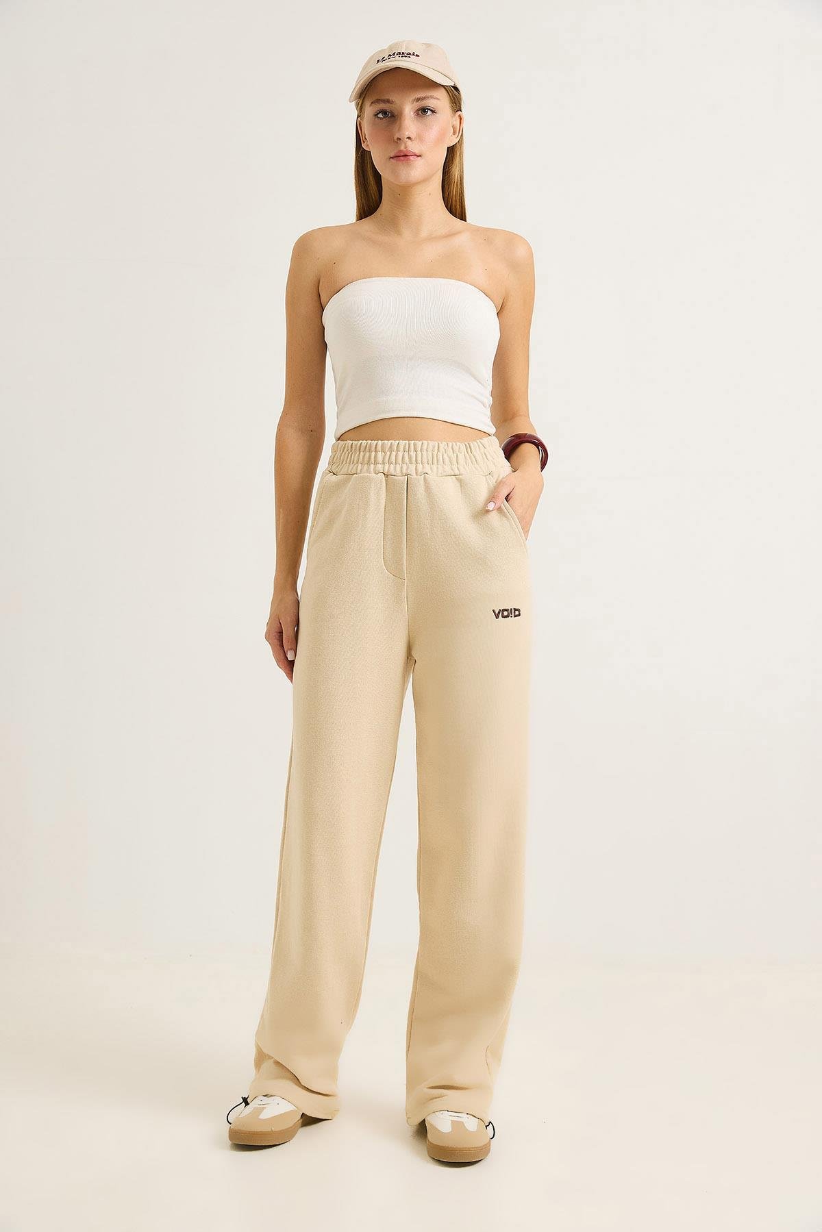 Kadın Ayarlanabilr Lastikli Paça 3ip Şardonsuz Eşofman Altı Bej (500713EŞFXBEJ)