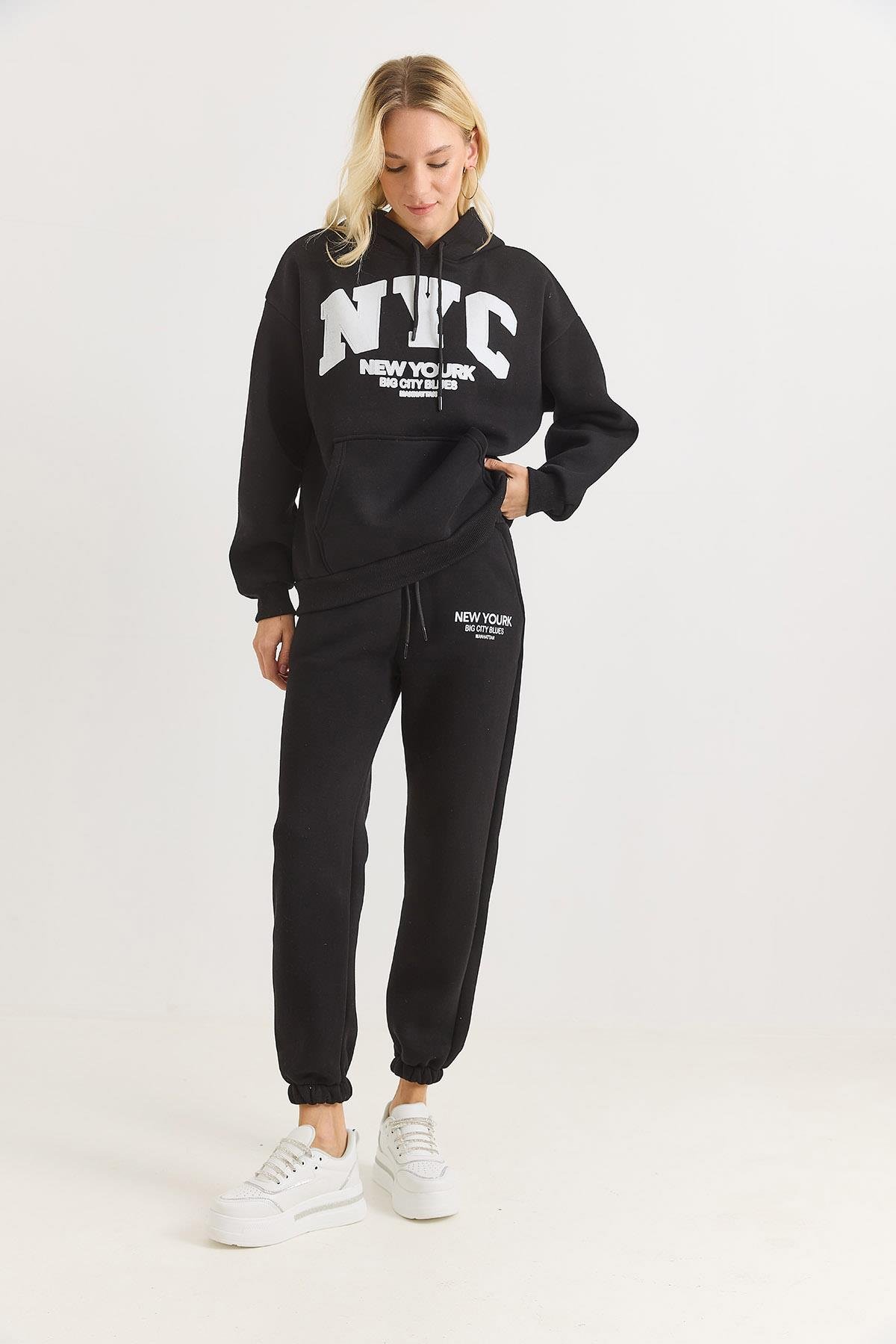Kadın Baskılı Üç İplik Şardonlu Eşofman Takımı