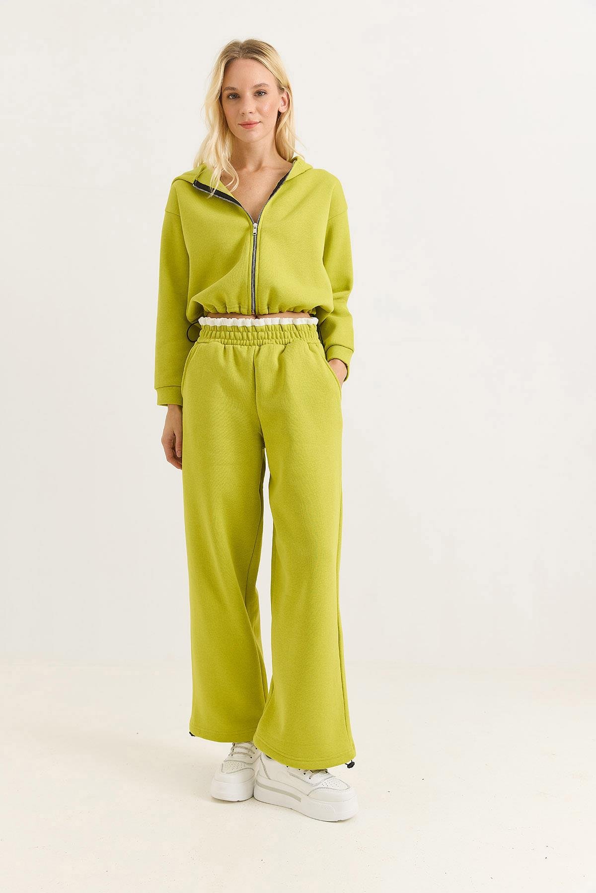 Kadın Beli ve Paçaları Ayalanabilr Lastıkli Crop Swet Eşofman Takımı Yeşil