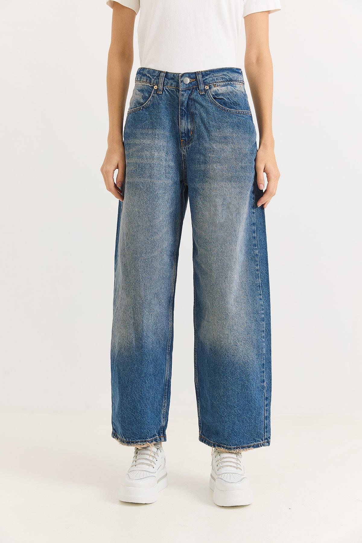 Kadın Bol Kesik Paça Şık Kot Pantalon Mavi (500806KOTXMVİ)