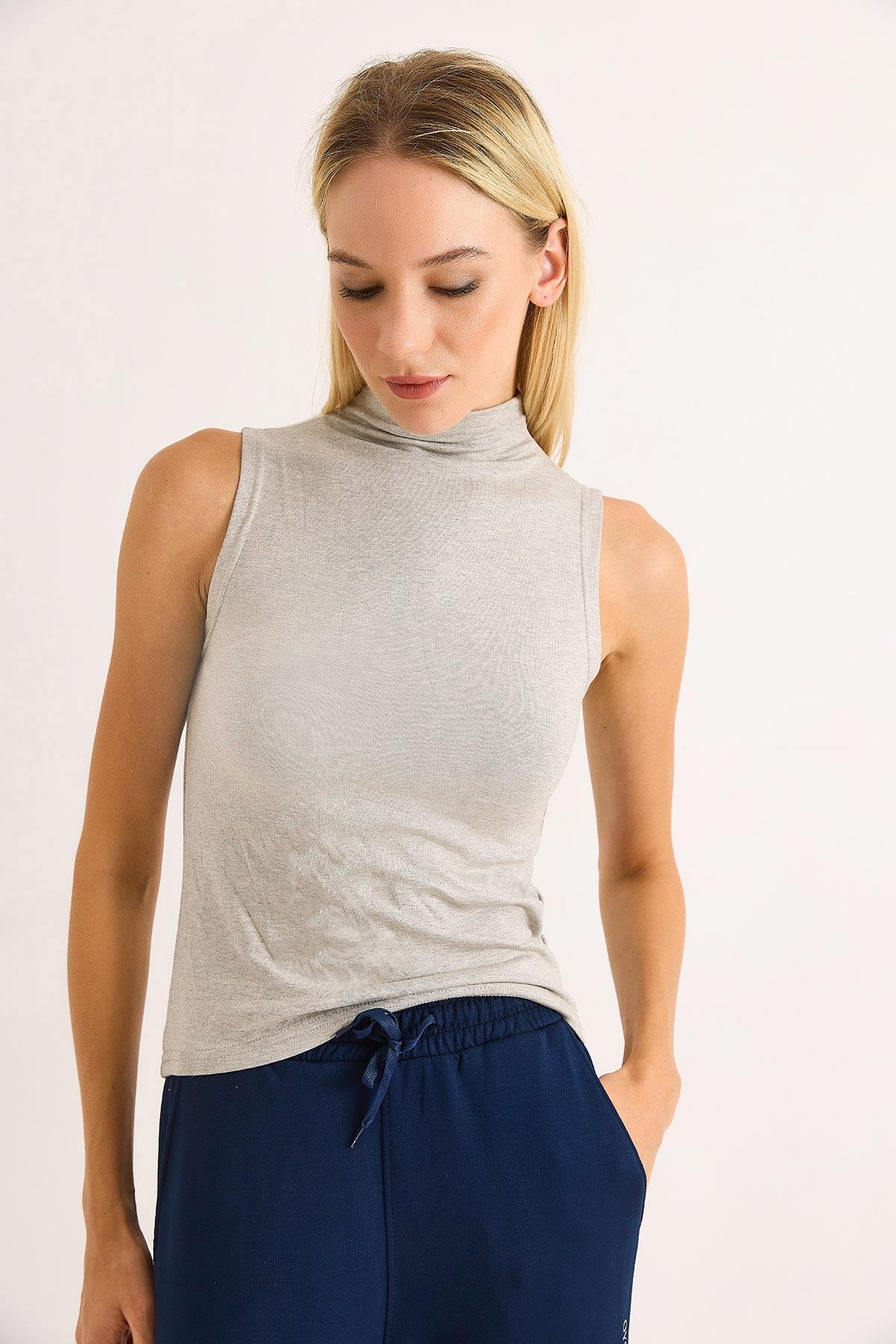 Kadın Dik Yaka Kolsuz Bluz Gri (500761BLZXGRİ)