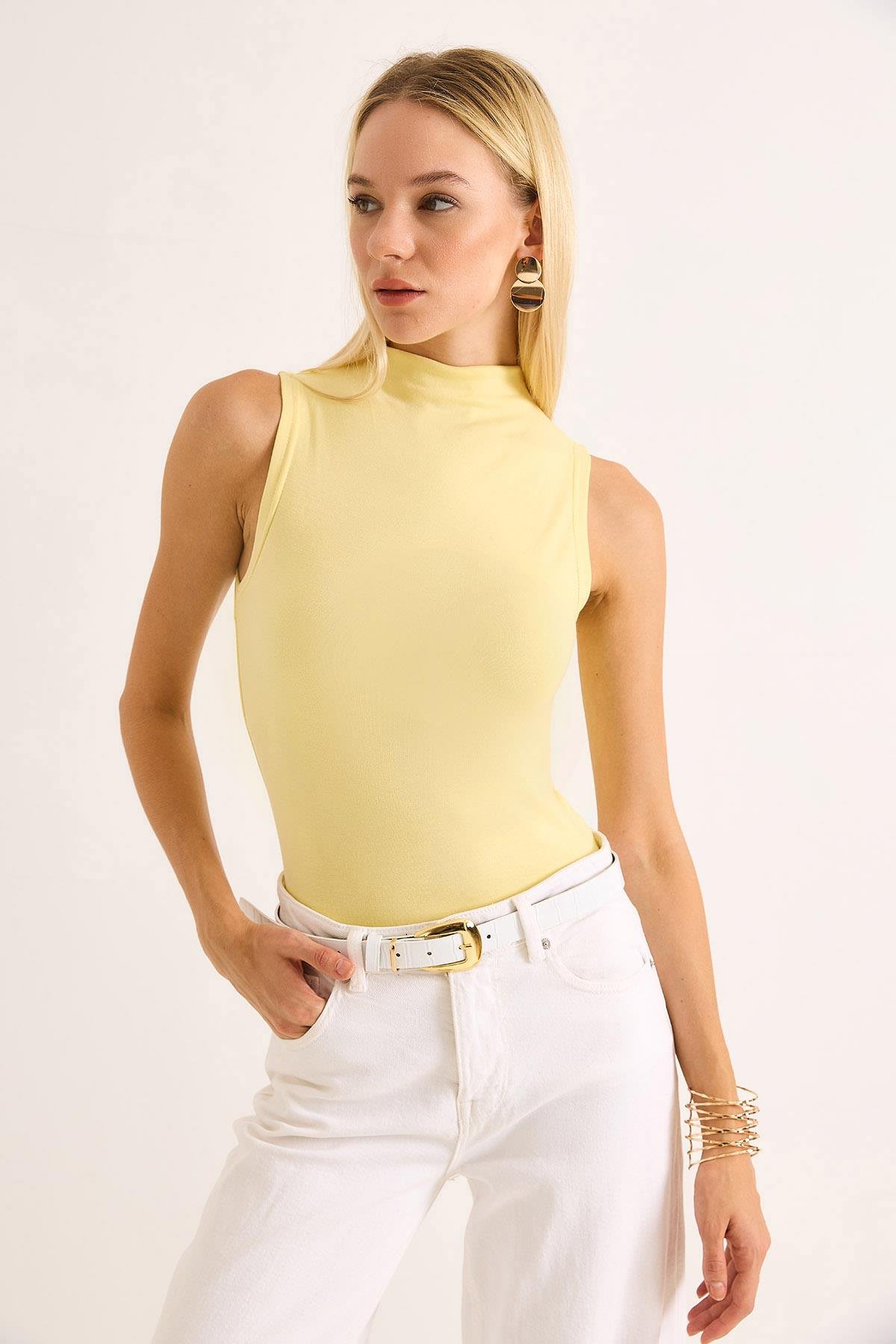 Kadın Dik Yaka Kolsuz Bluz Sarı (500761BLZXSRI)
