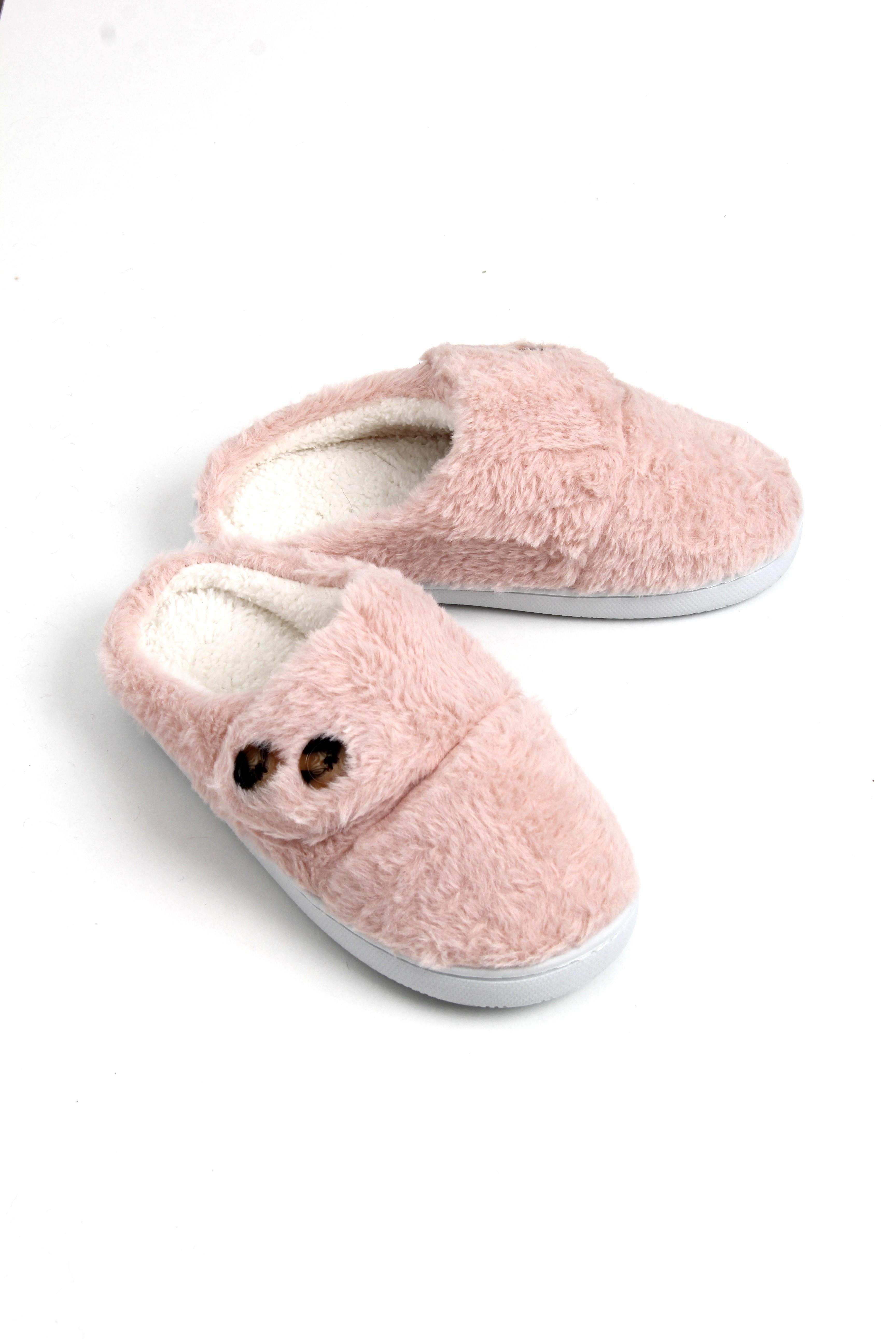Kadın Düğme Detaylı Rahat Taban Pembe Ev Teriiği (251396TRLXPMB)