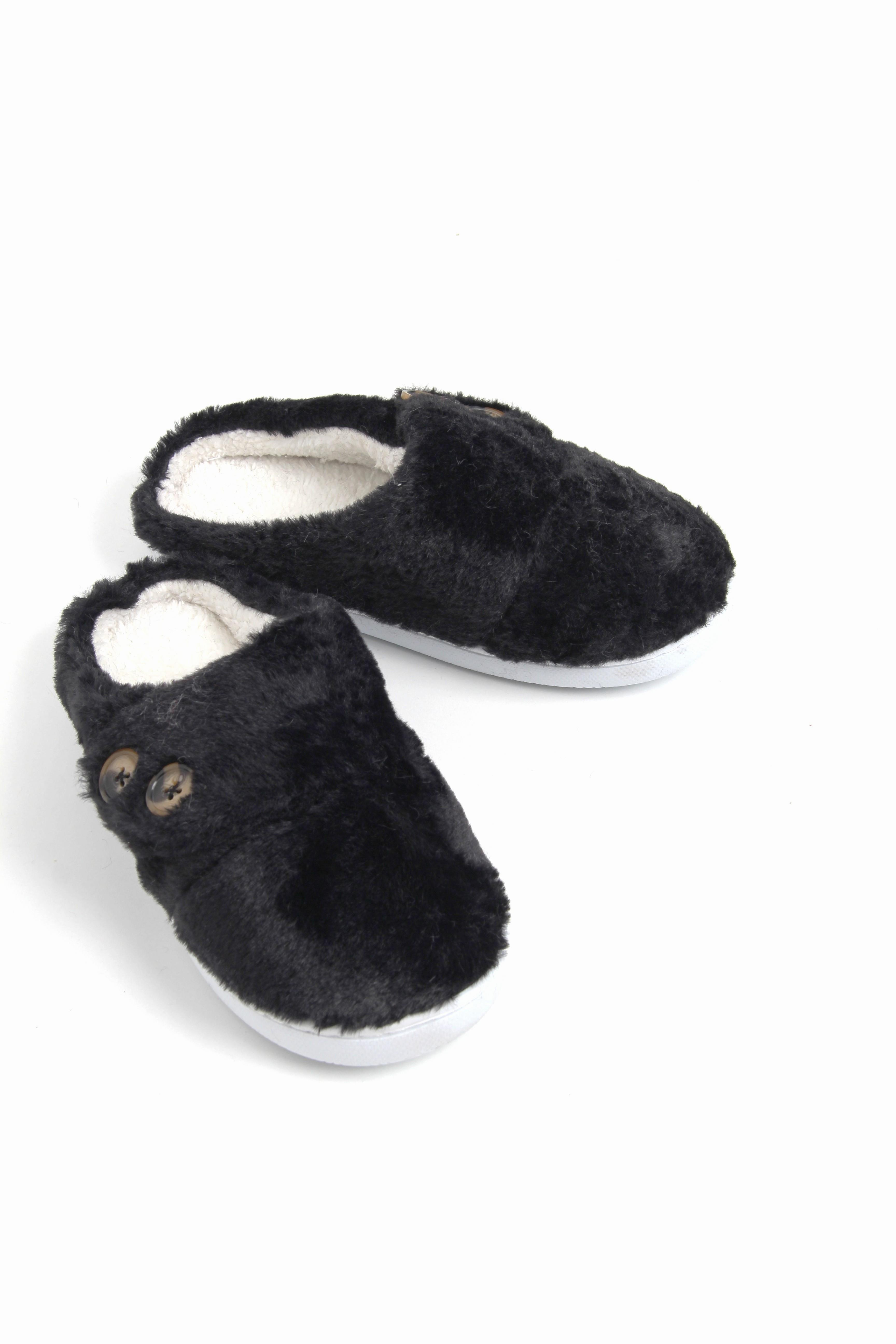 Kadın Düğme Detaylı Rahat Taban Siyah Ev Teriiği