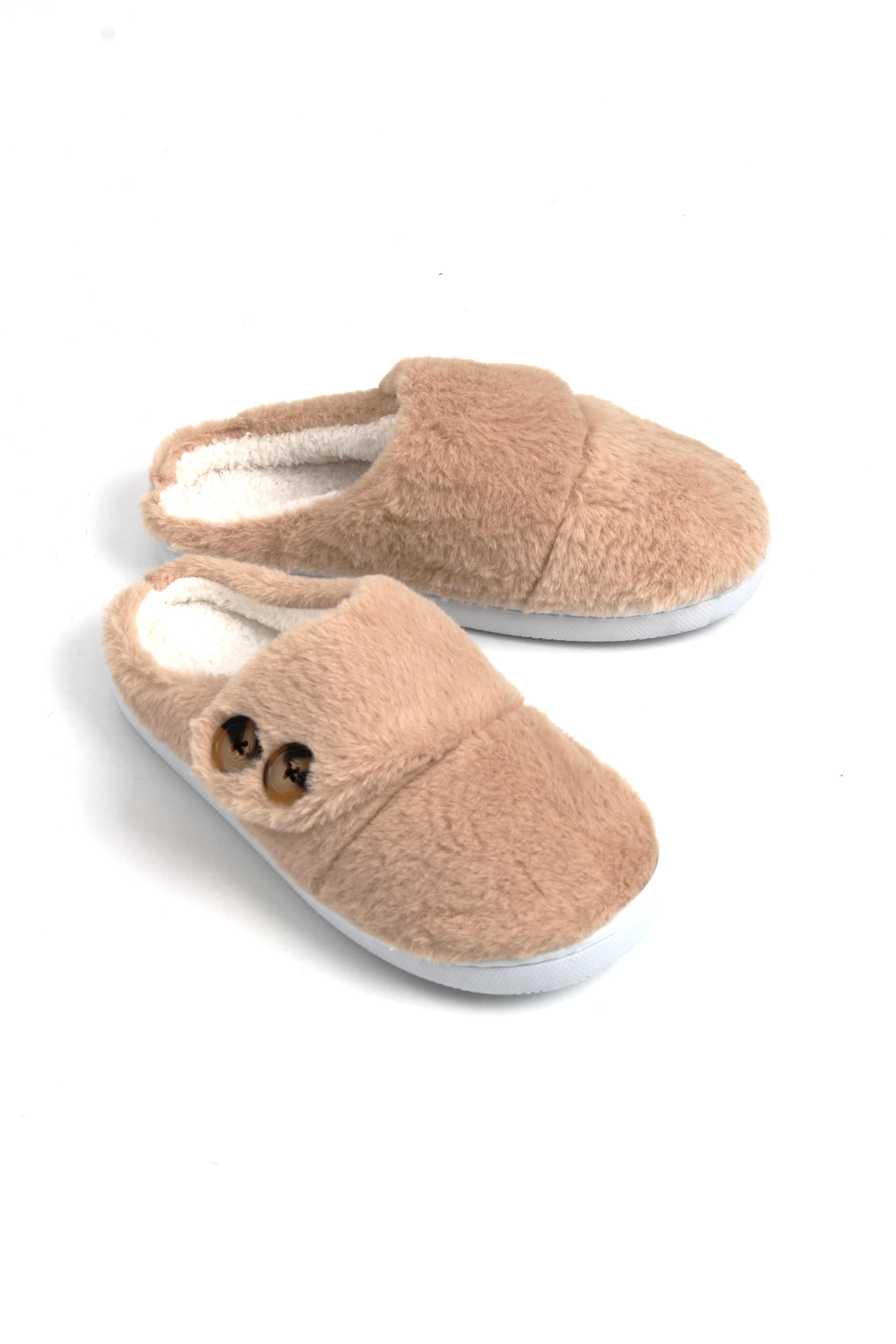 Kadın Düğme Detaylı Rahat Taban Sütlü Kahve  Ev Teriiği