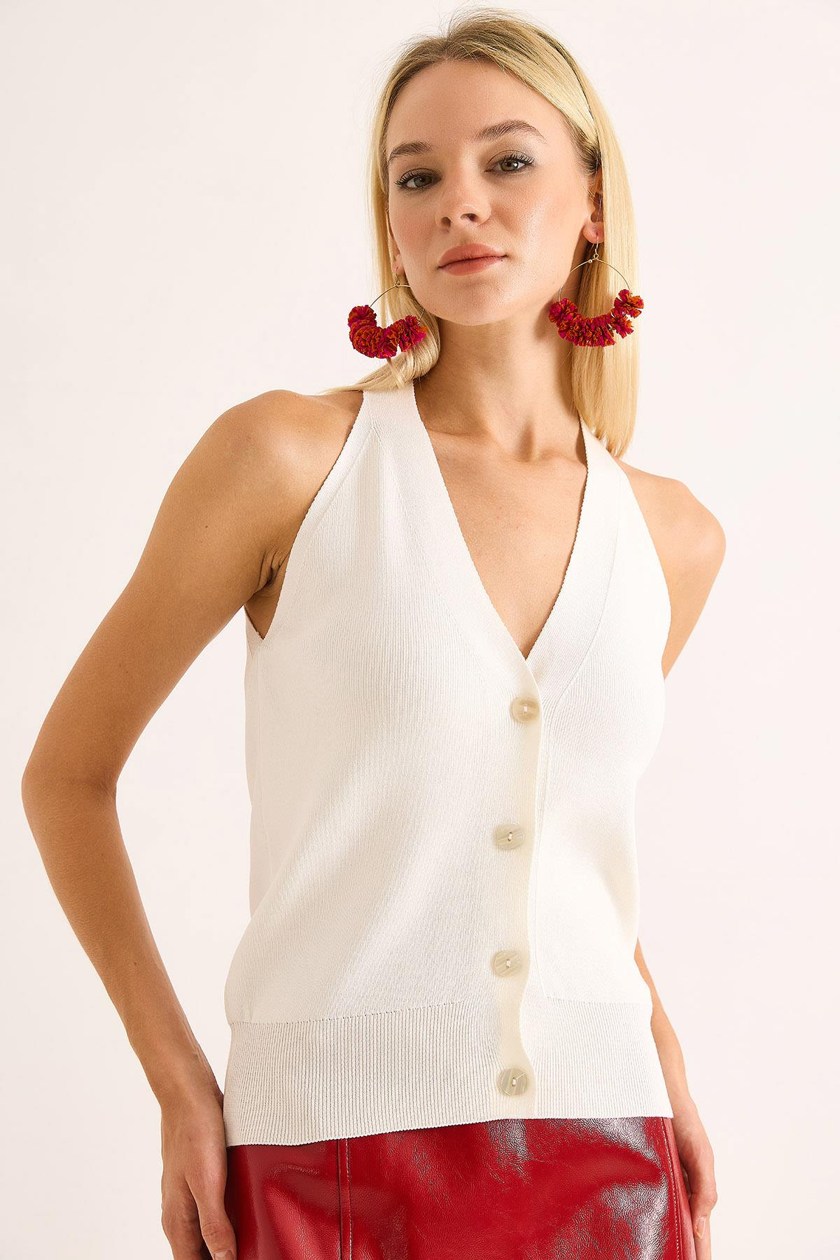 Kadın Düğmeli Triko Yelek Beyaz (500771YLKXBYZ)
