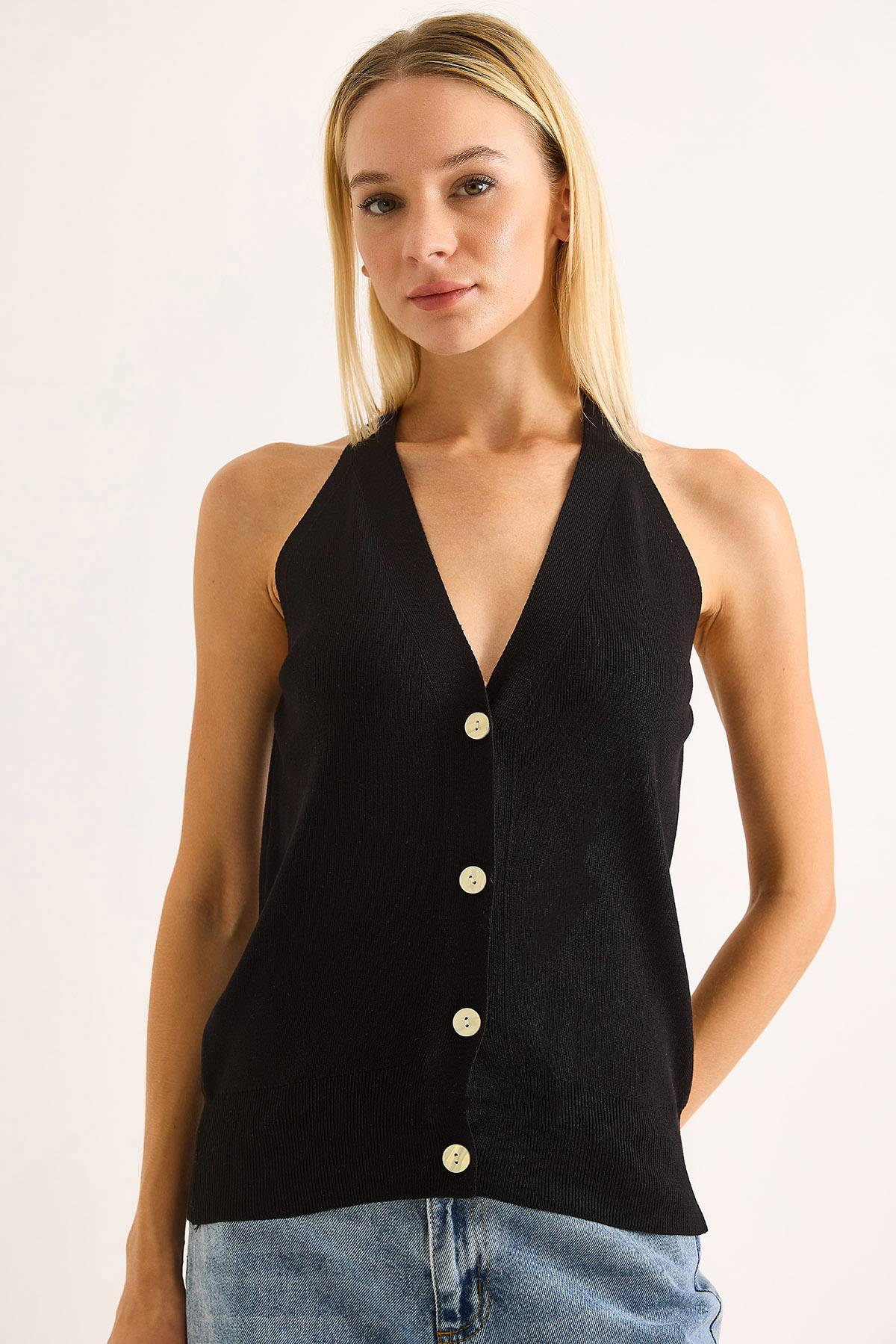 Kadın Düğmeli Triko Yelek Siyah (500771YLKXSYH)