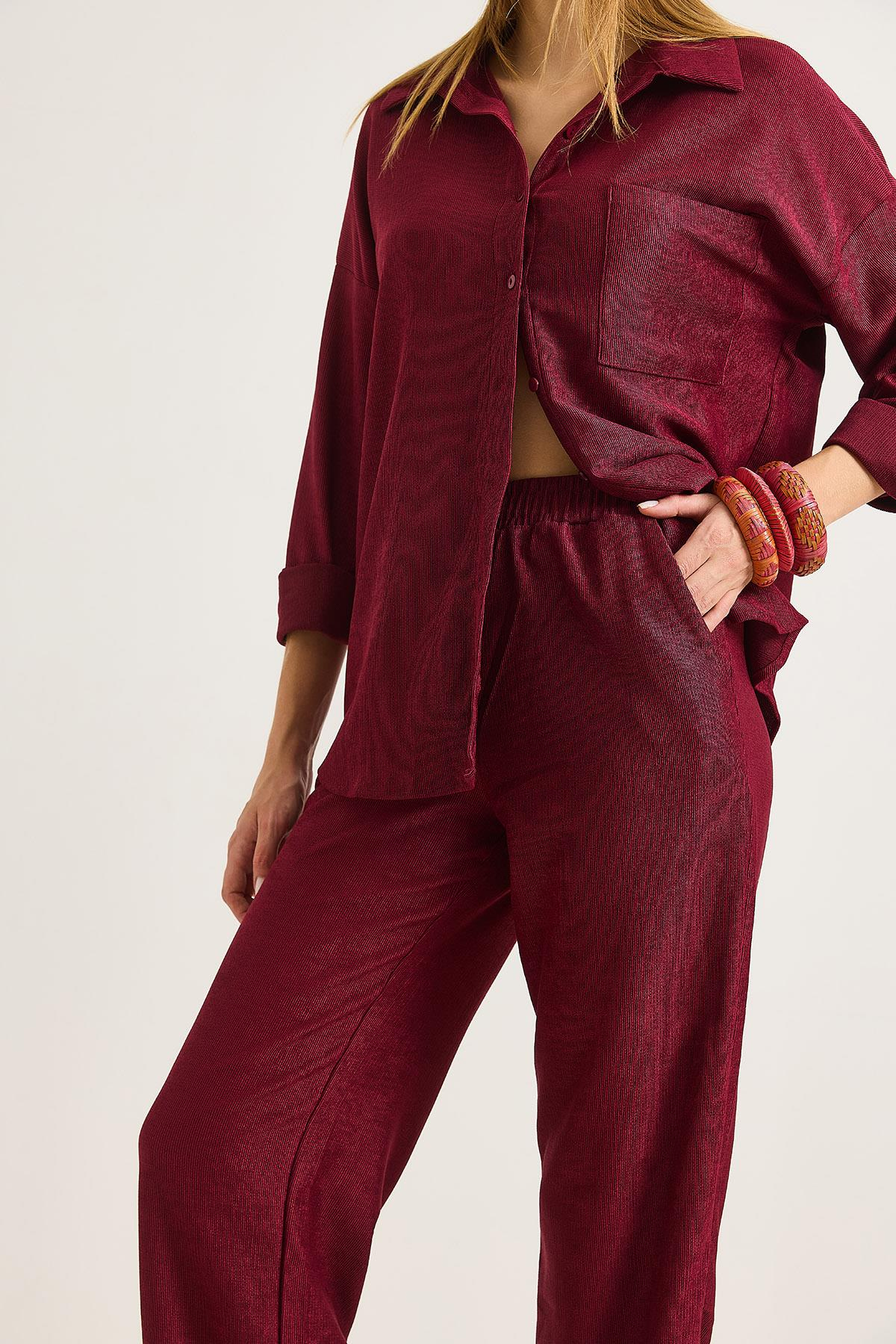 Kadın Fitilli Örme Gömlekli Takım Antrasit Bordo