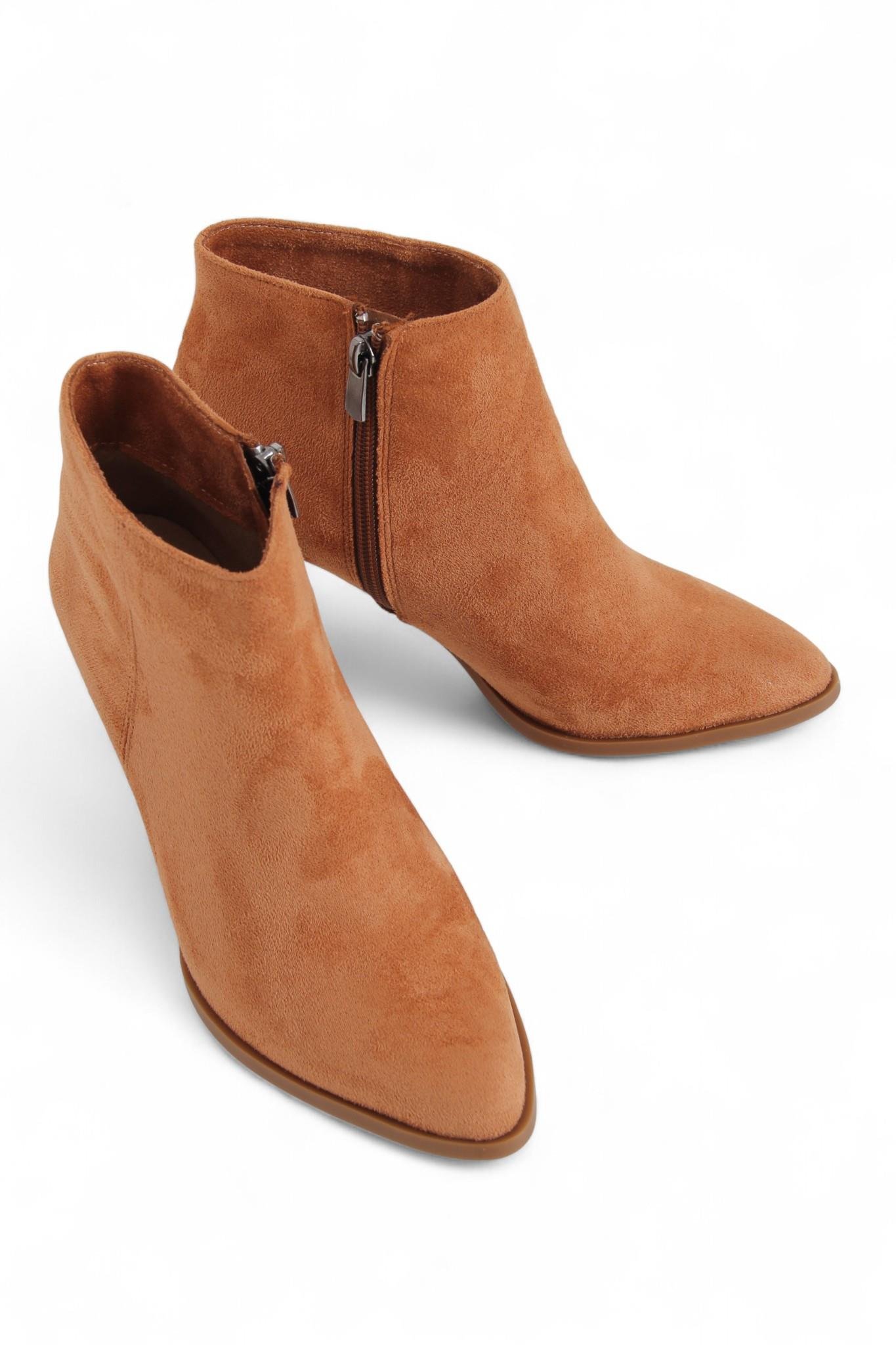 Kadın İnce Topuk Fermuarlı Süet Taba Bot