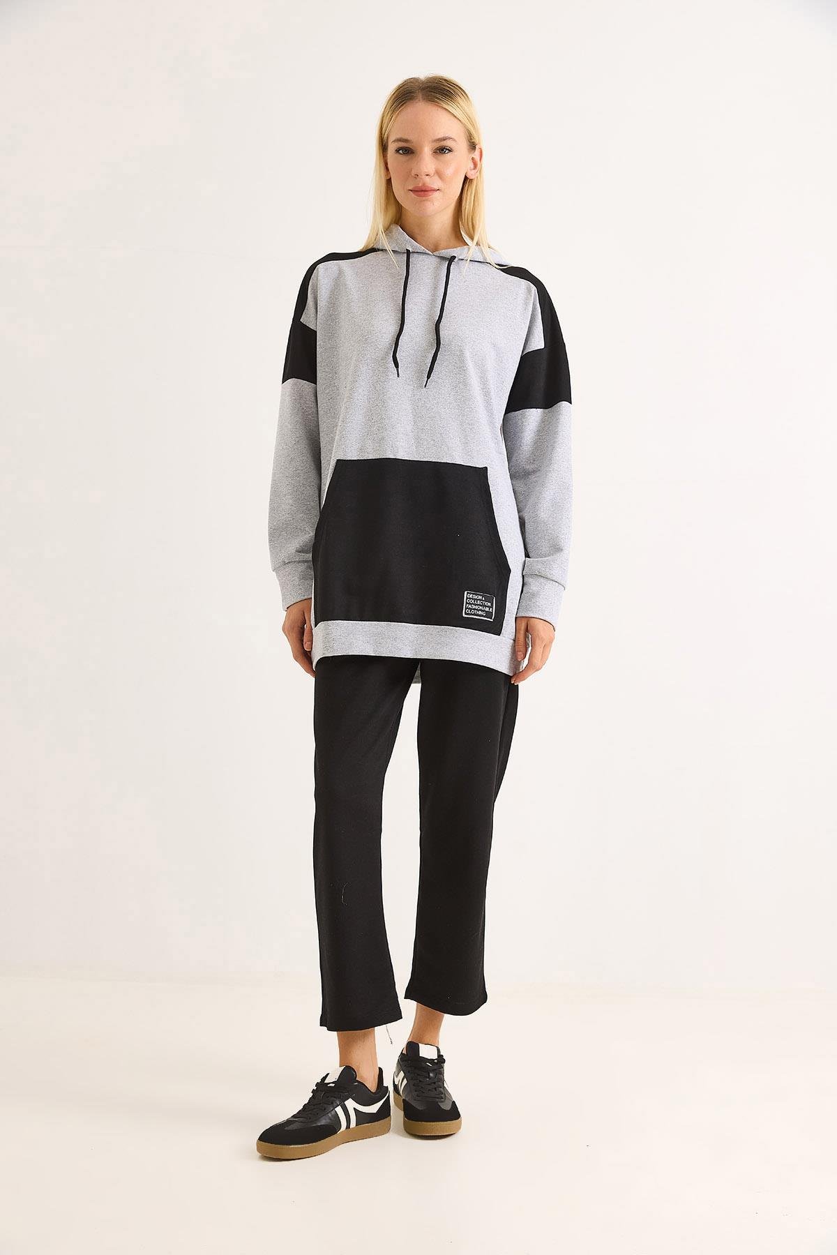 Kadın Kangru Cepli İkili Spor Takım Siyah