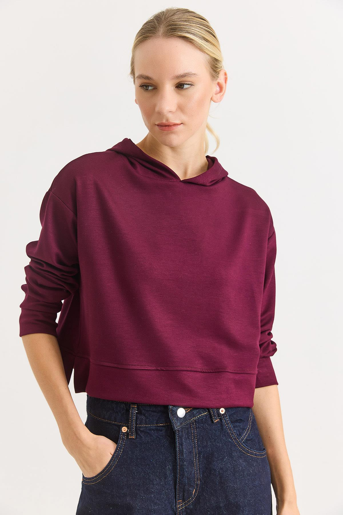 Kadın Kapişonlu Düz Rahat Swet Bordo (500790SWTXBRD)