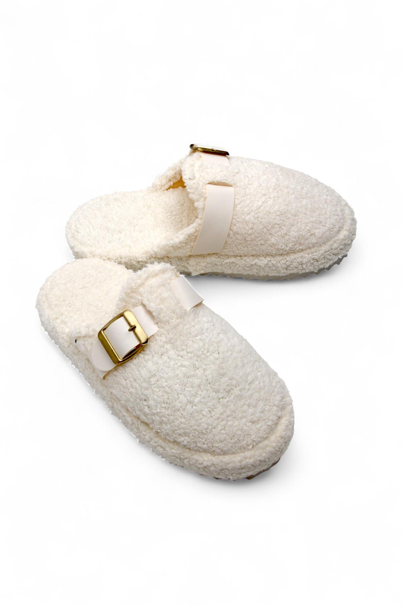Kadın Kışlık  Tek Tokalı Ekru Ev Terliği