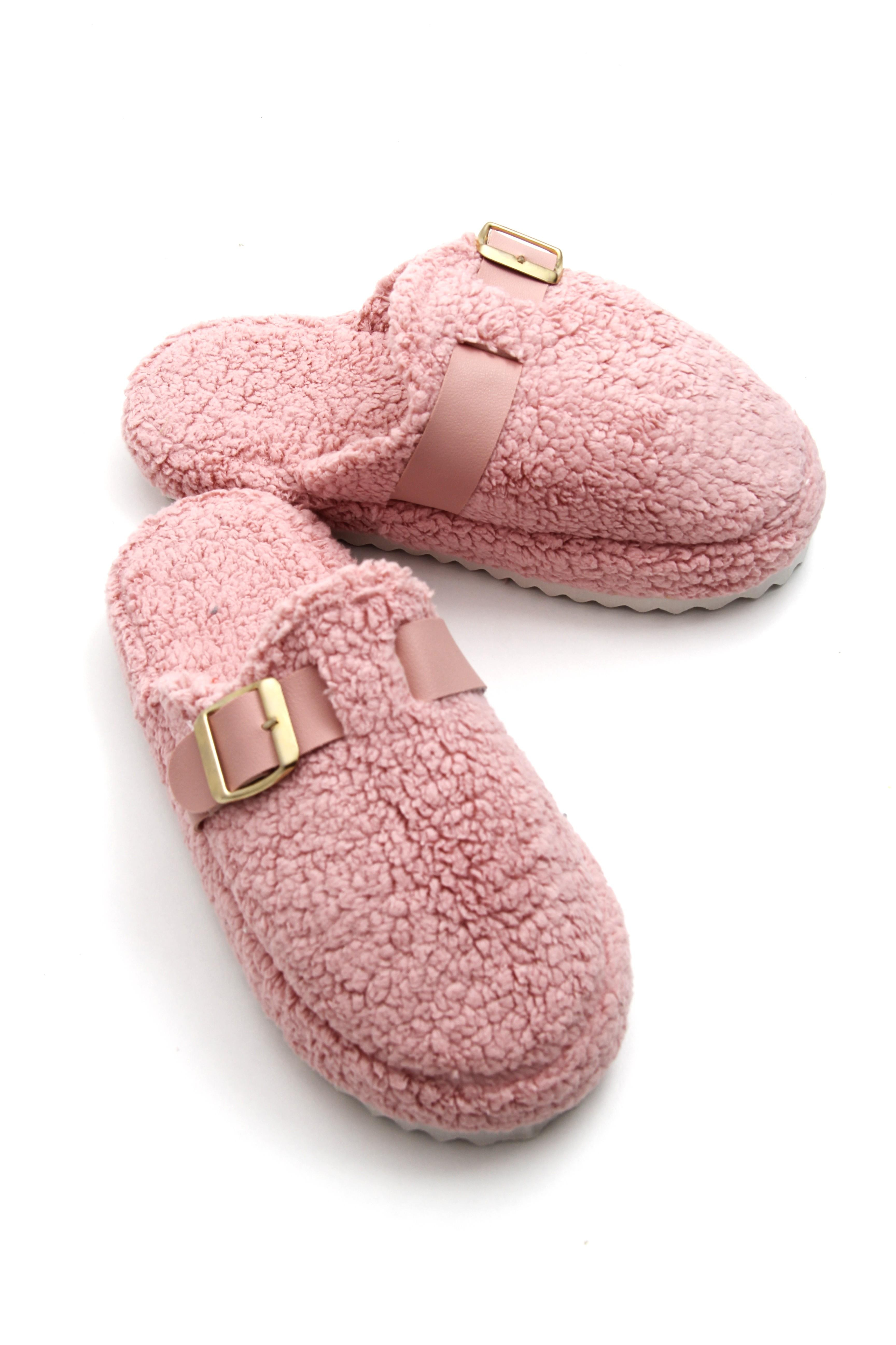 Kadın Kışlık Tek Tokalı Pembe Ev Terliği (251394TRLXPMB)
