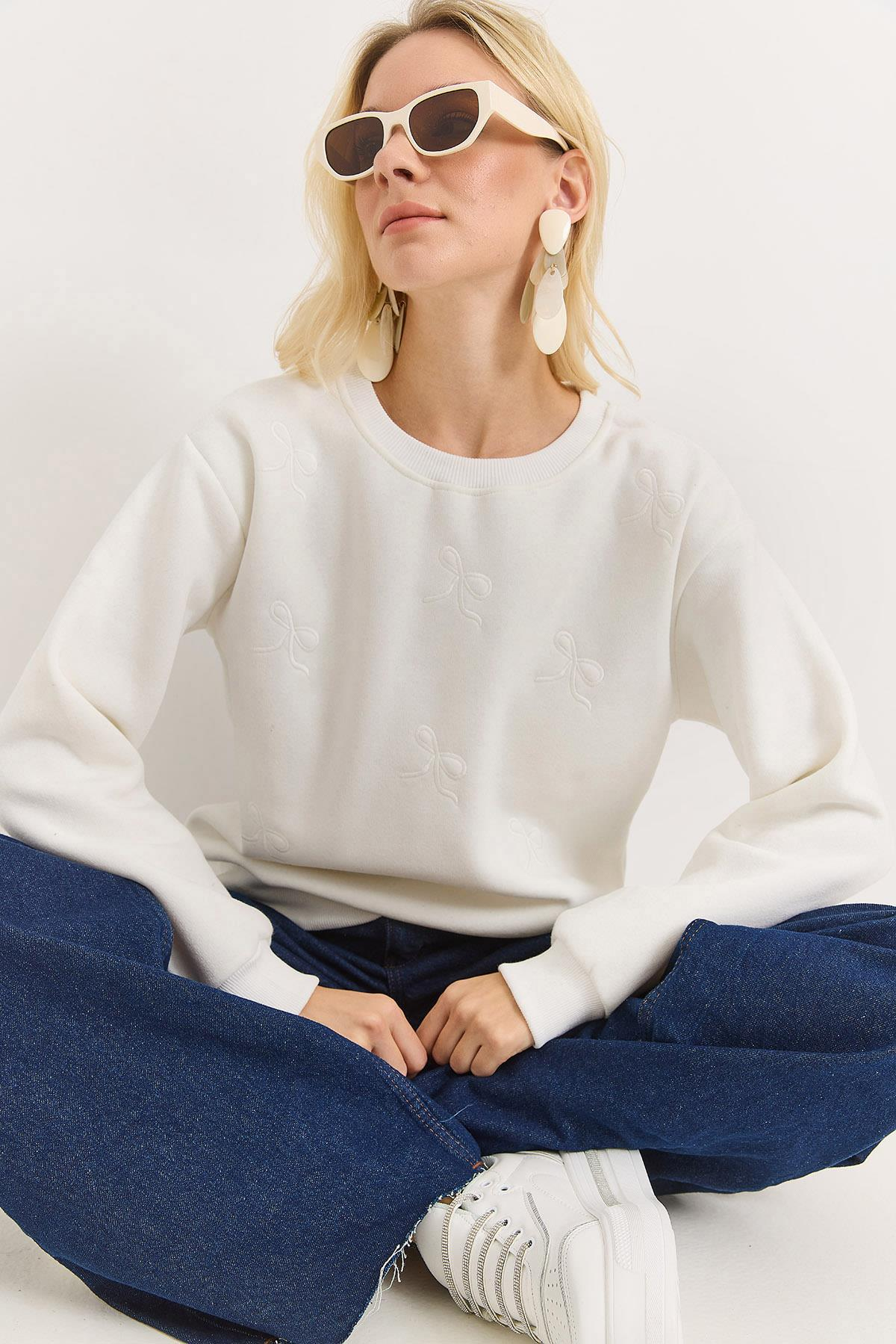 Kadın Kurdele Nakışlı Swet Üç İplik Beyaz (500793SWTXBYZ)