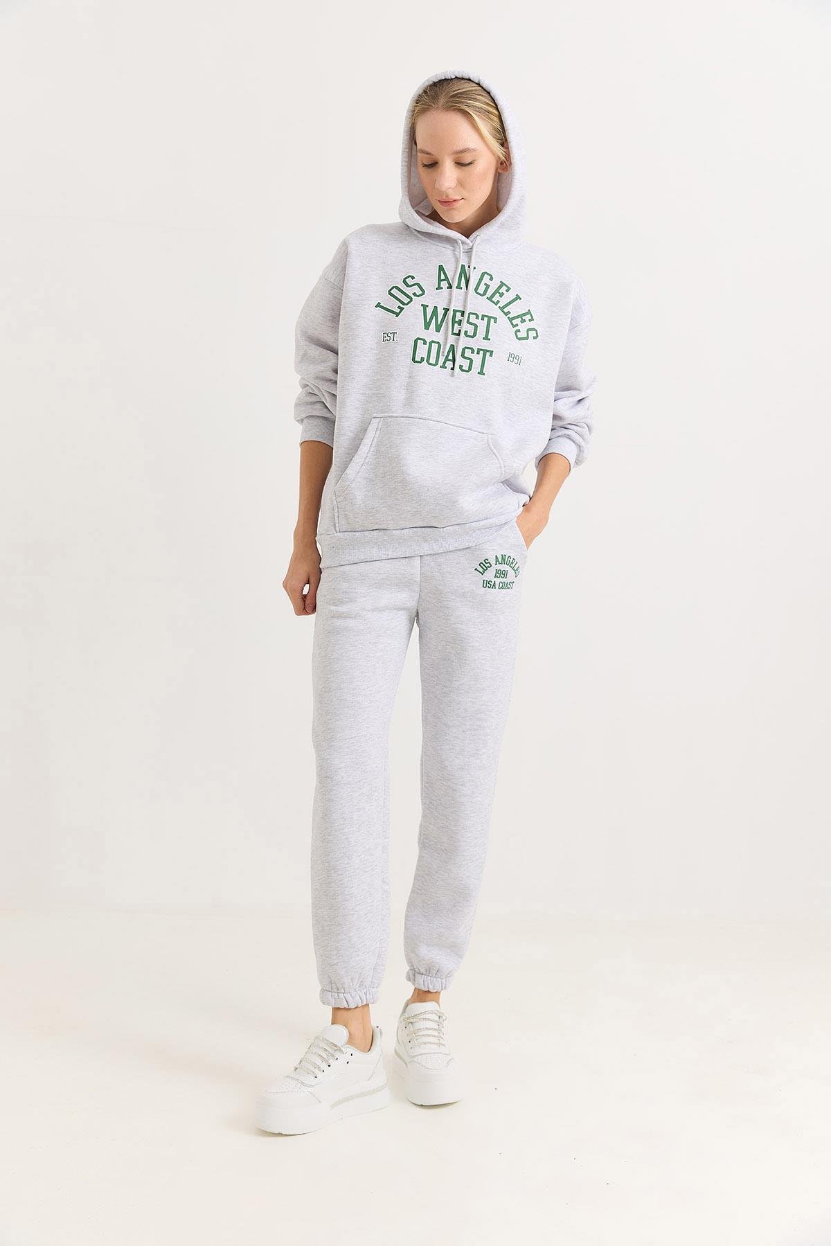 Kadın Los Angeles Baskılı Eşofman Takımı Üç İplik Gri (500788EŞFXGRİ)