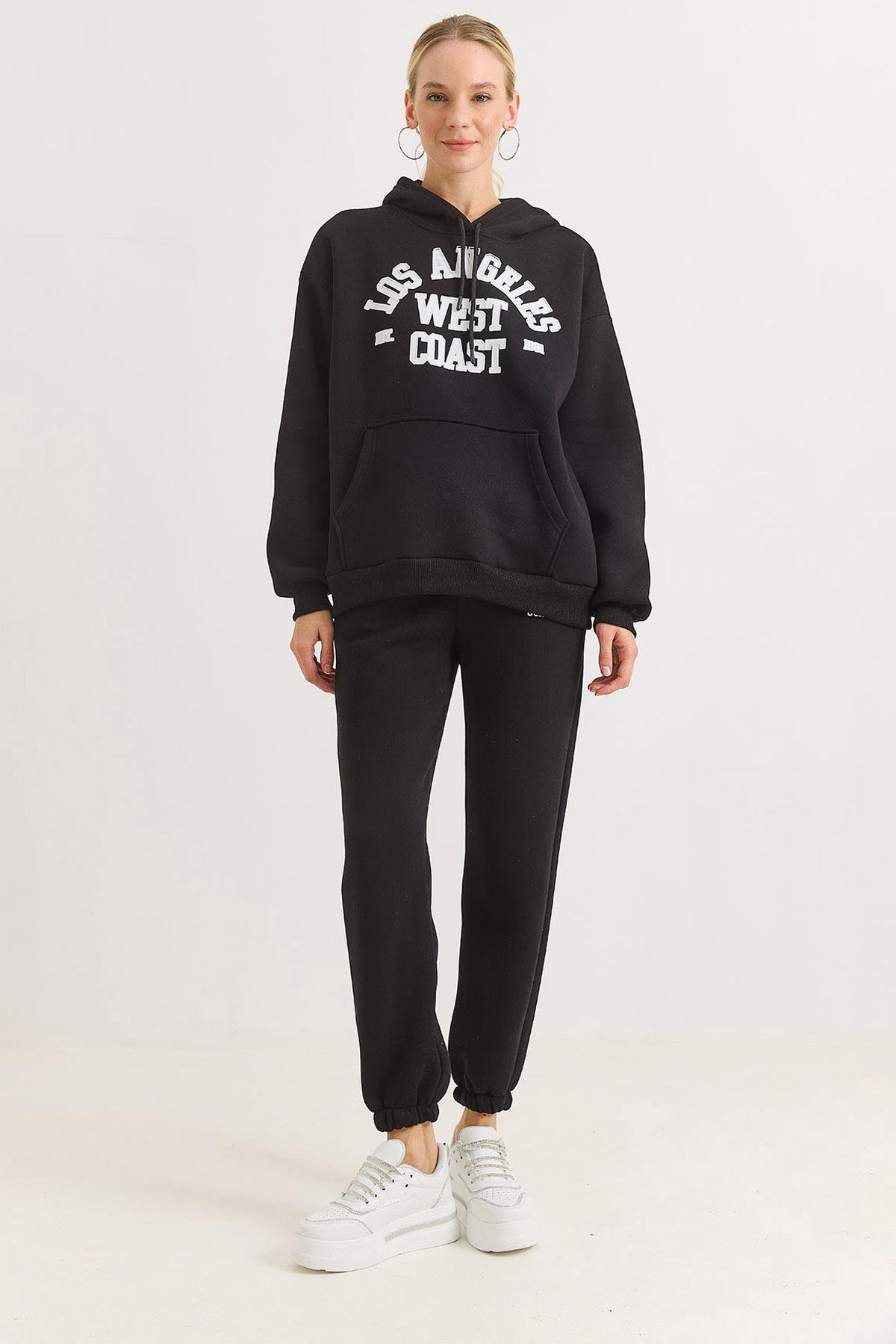 Kadın Los Angeles Baskılı Eşofman Takımı Üç İplik Siyah