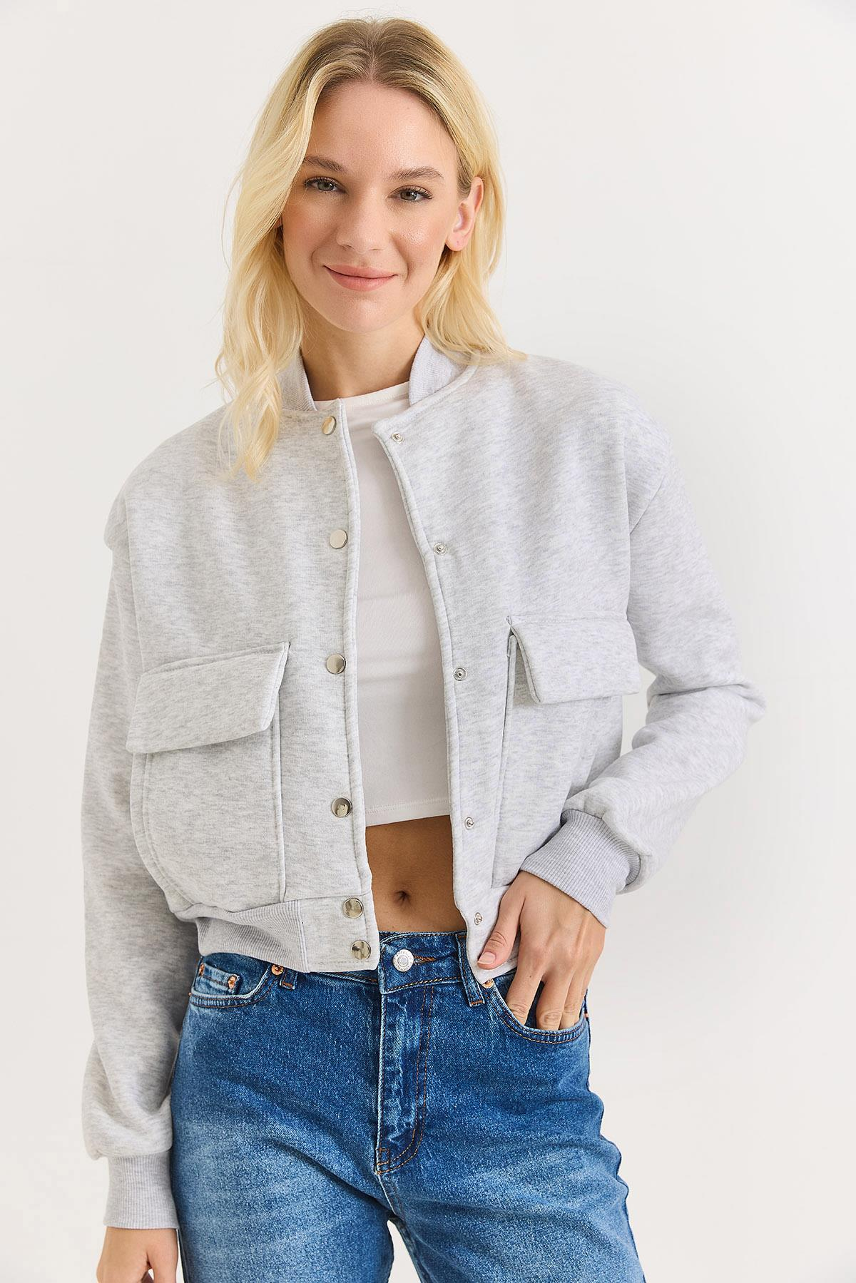 Kadın Metal Düğmeli Üç İplik Hırka Gri (500794HRKXGRİ)
