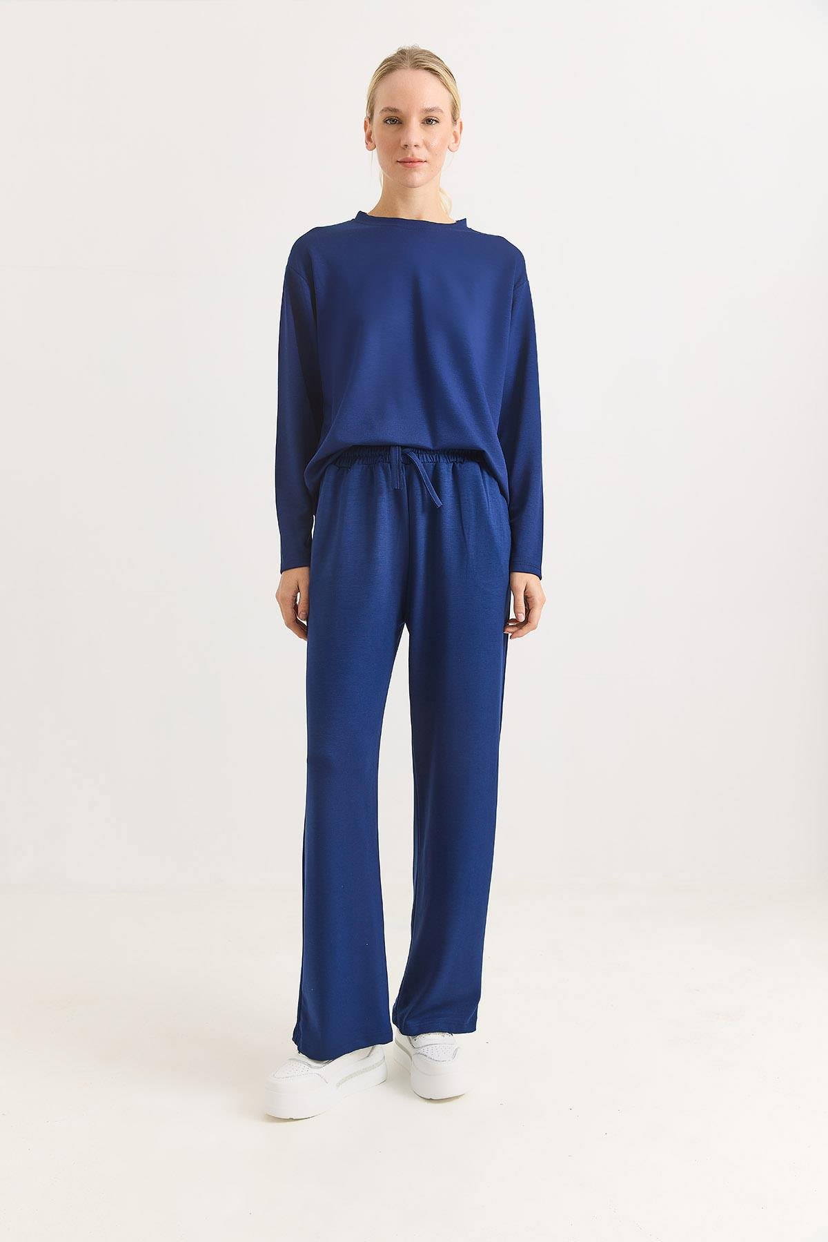 Kadın Modal Yağ Yeşili Alt Üst Basic Eşofman Takımı Lacivert (500790EŞFXLCV)