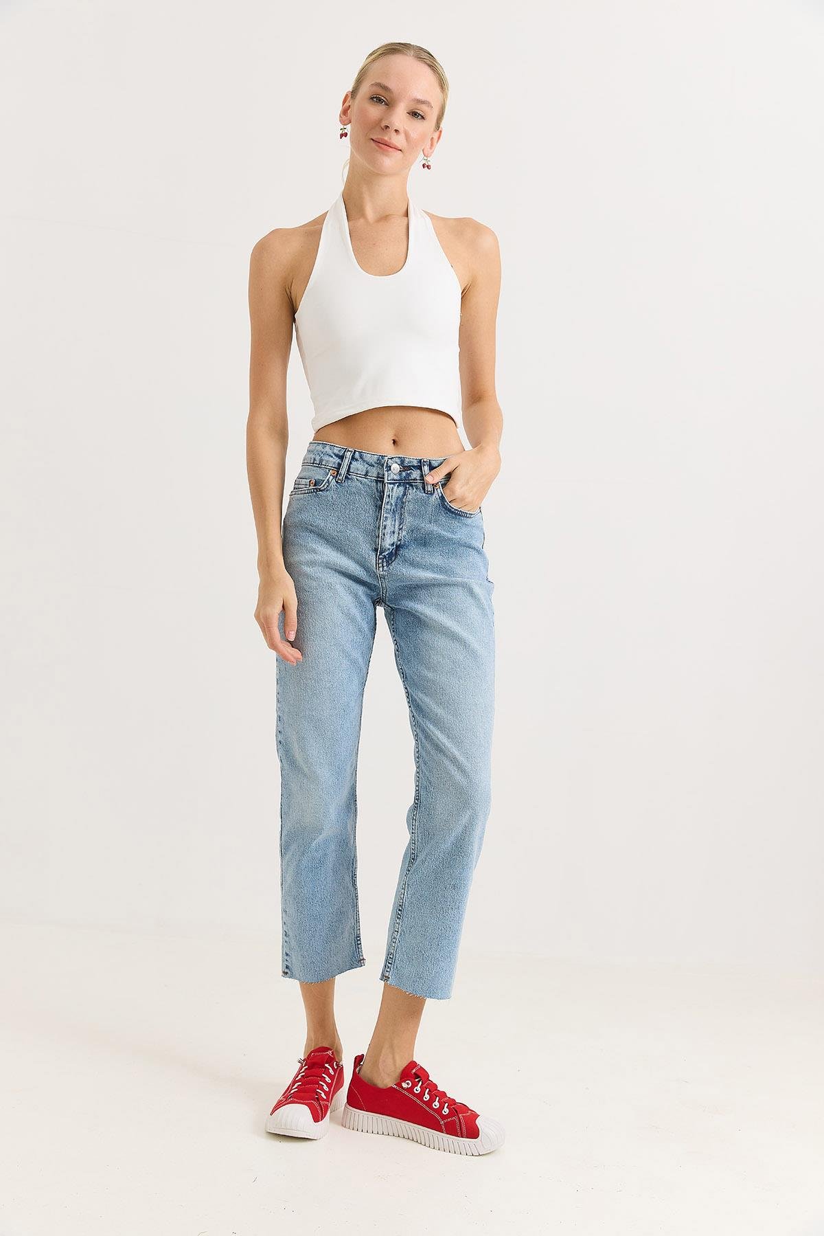 Kadın Mom Yüksek Bel Açık Mavi Jean