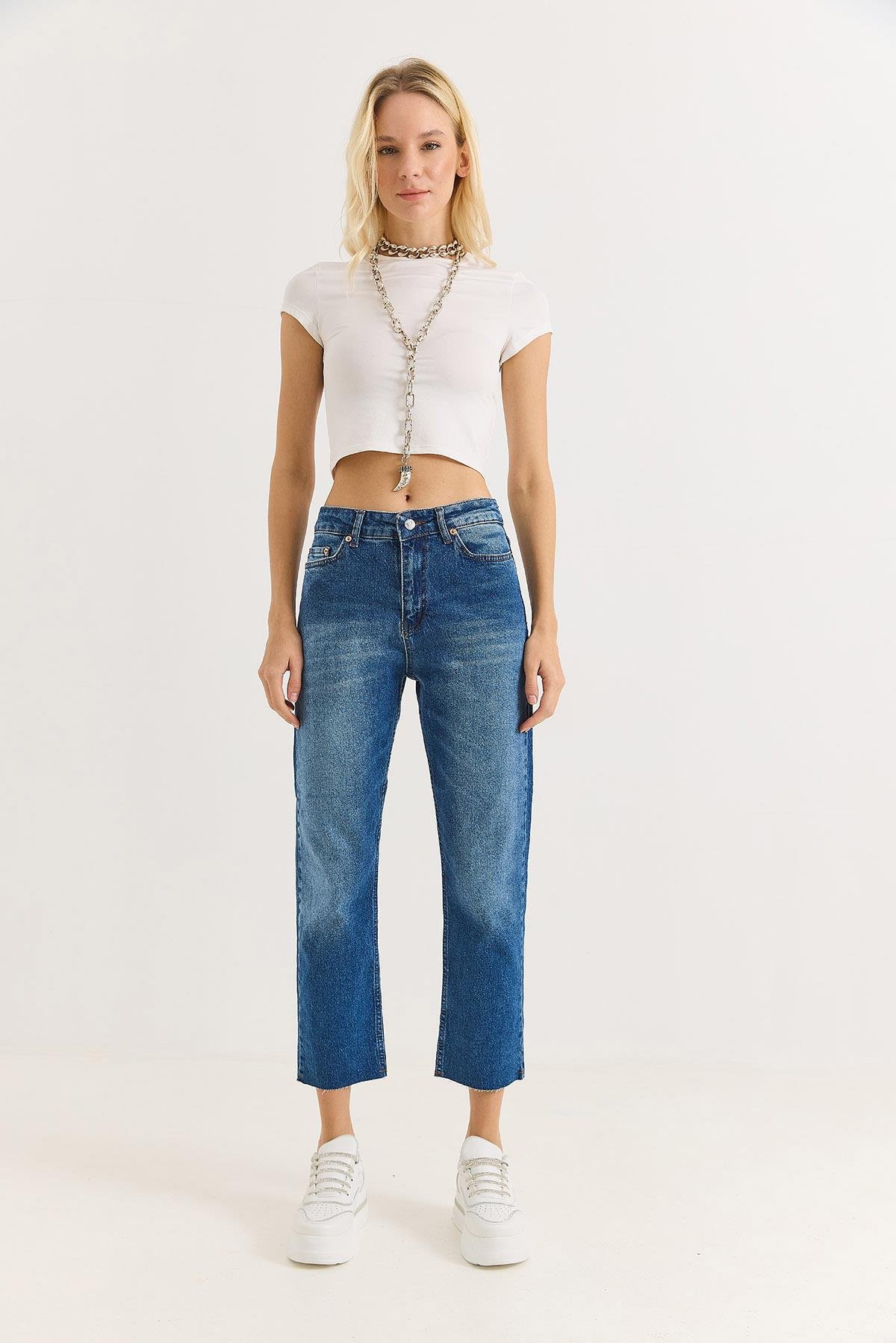 Kadın Mom Yüksek Bel Mavi Jean (500808KOTXMAVİ)