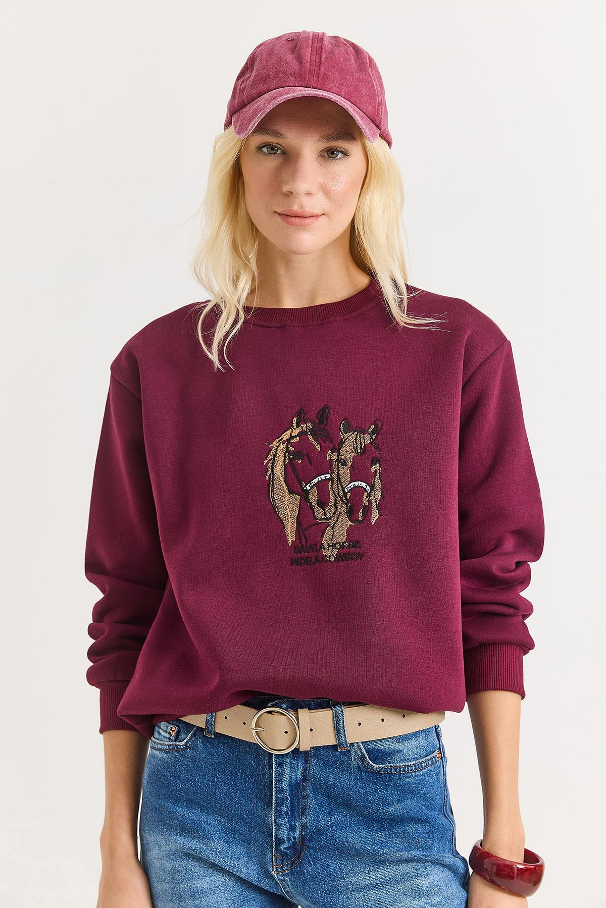 Kadın Nakışlı Üç İplik Swet Bordo (500792SWTXBRD)