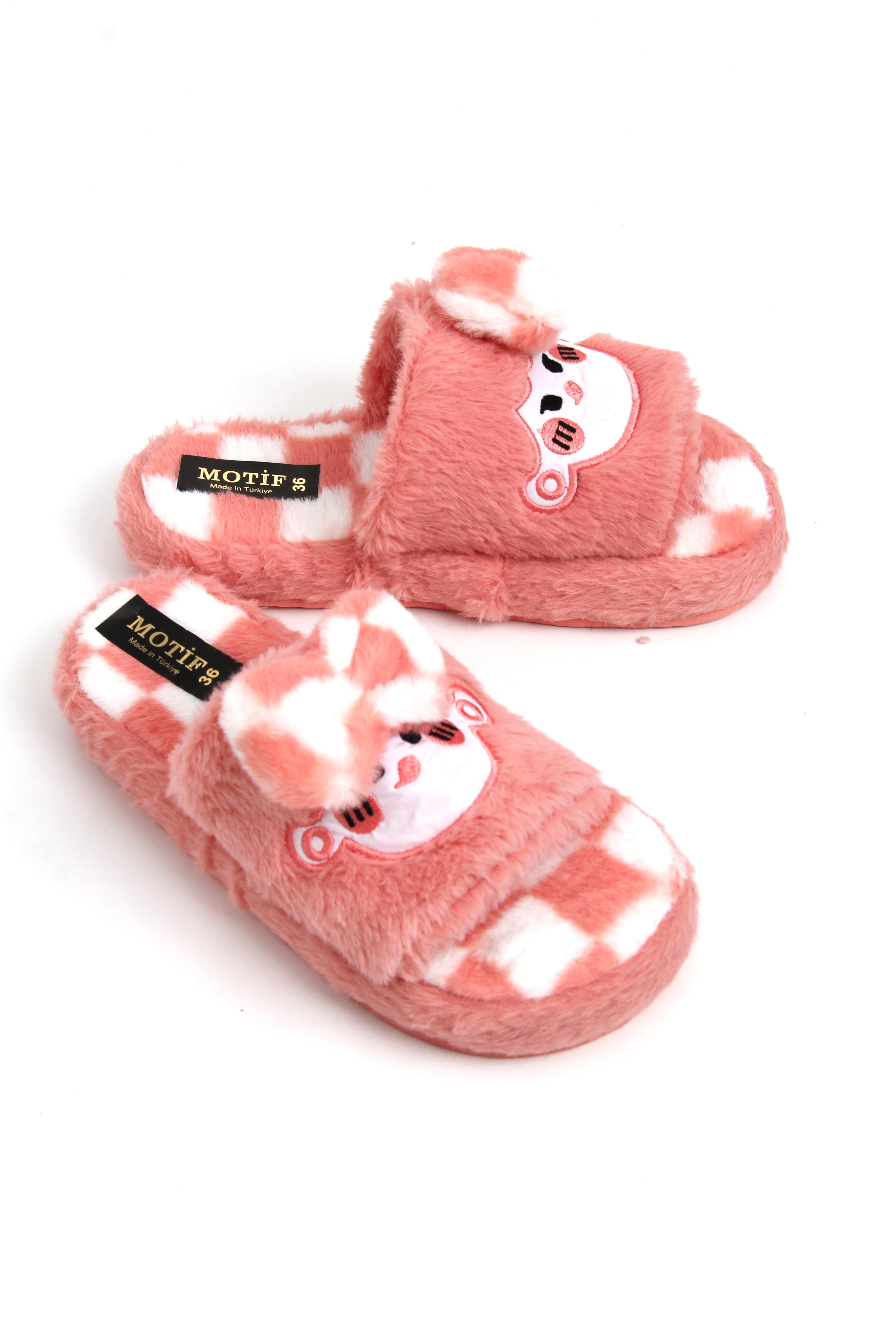 Kadın Önü Açık Peluş Pembe Ev Terliği (251395TRLXPMB)
