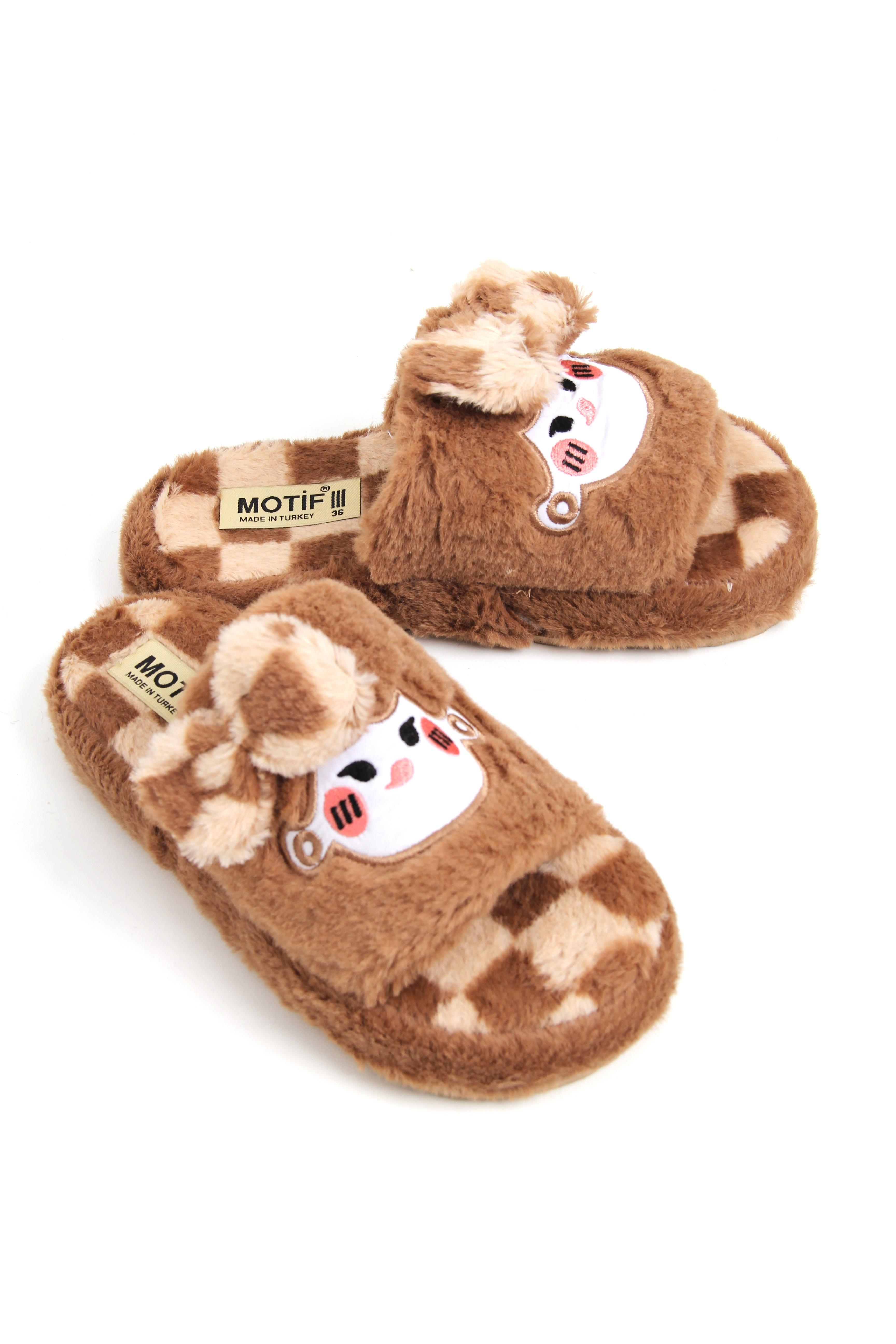 Kadın Önü Açık Peluş Kahverengi Ev Terliği
