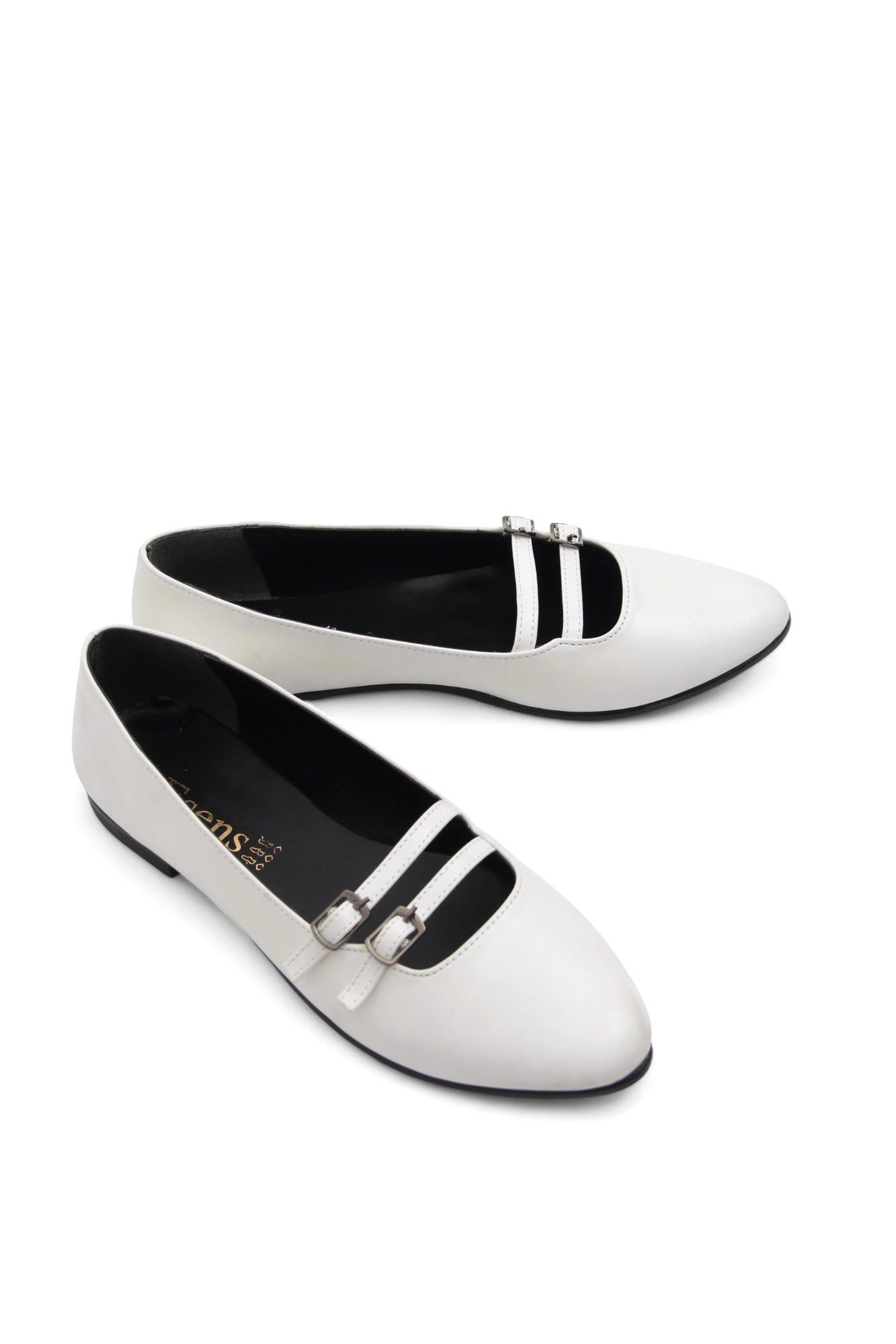 Kadın Oval Burun Çift Tokalı Babet Beyaz (251379AYKXBYZ)