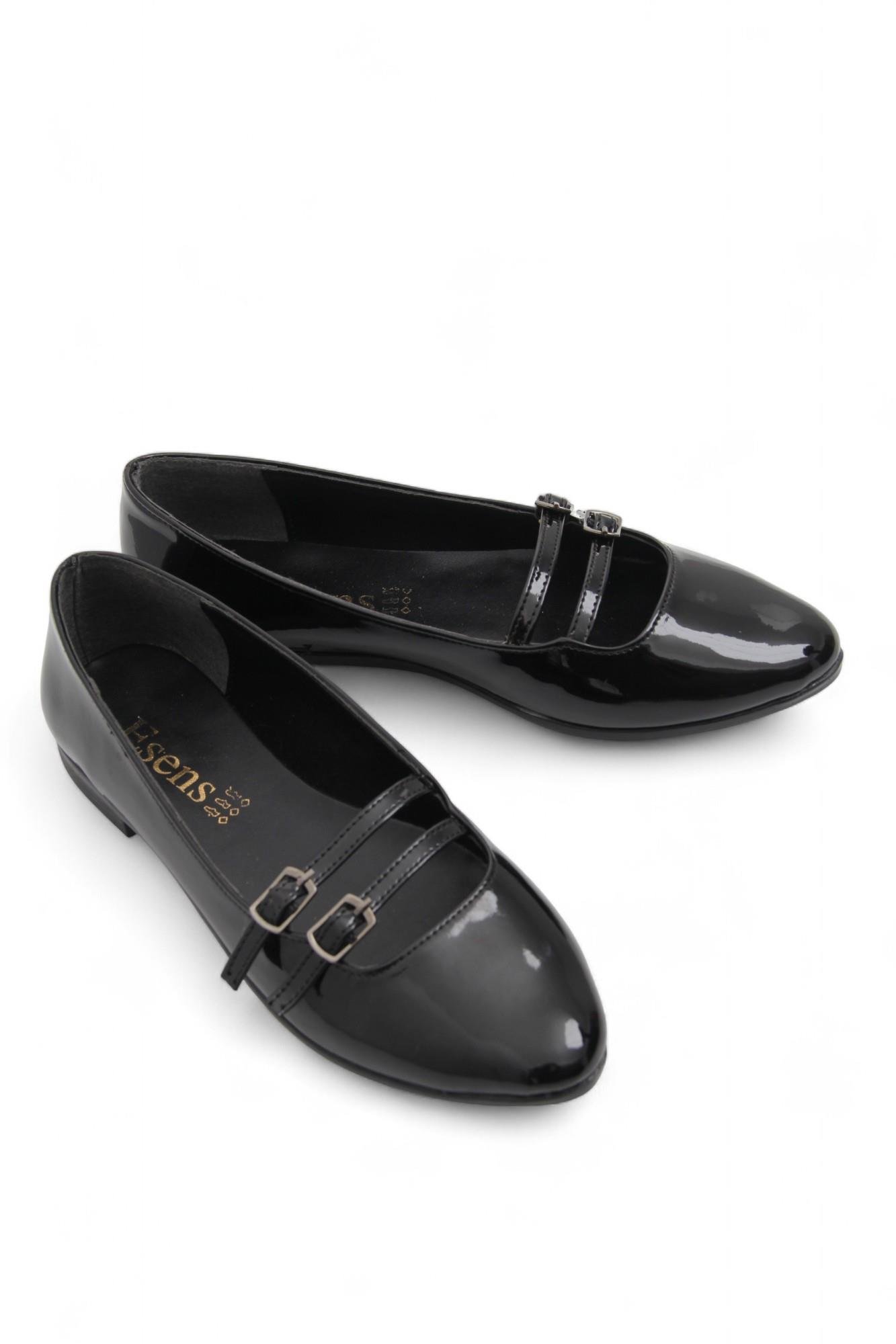 Kadın Oval Burun Çift Tokalı Rugan Babet Siyah (251379AYKXSYH)